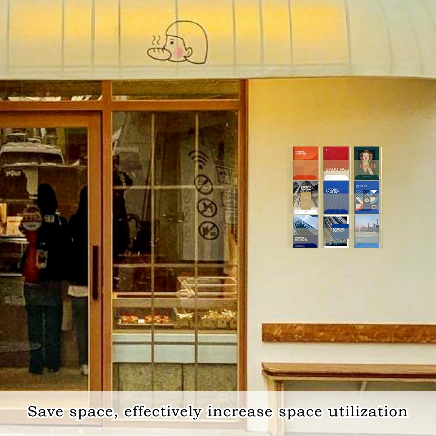 Acrylic Brochure Pamphlet Holder, 9 Magazine Holders, Clear Brochure Display Stand Wall Mount, Trifold Flyer Rack, Literature Storage Rack for Home, Offices, Waiting Room
