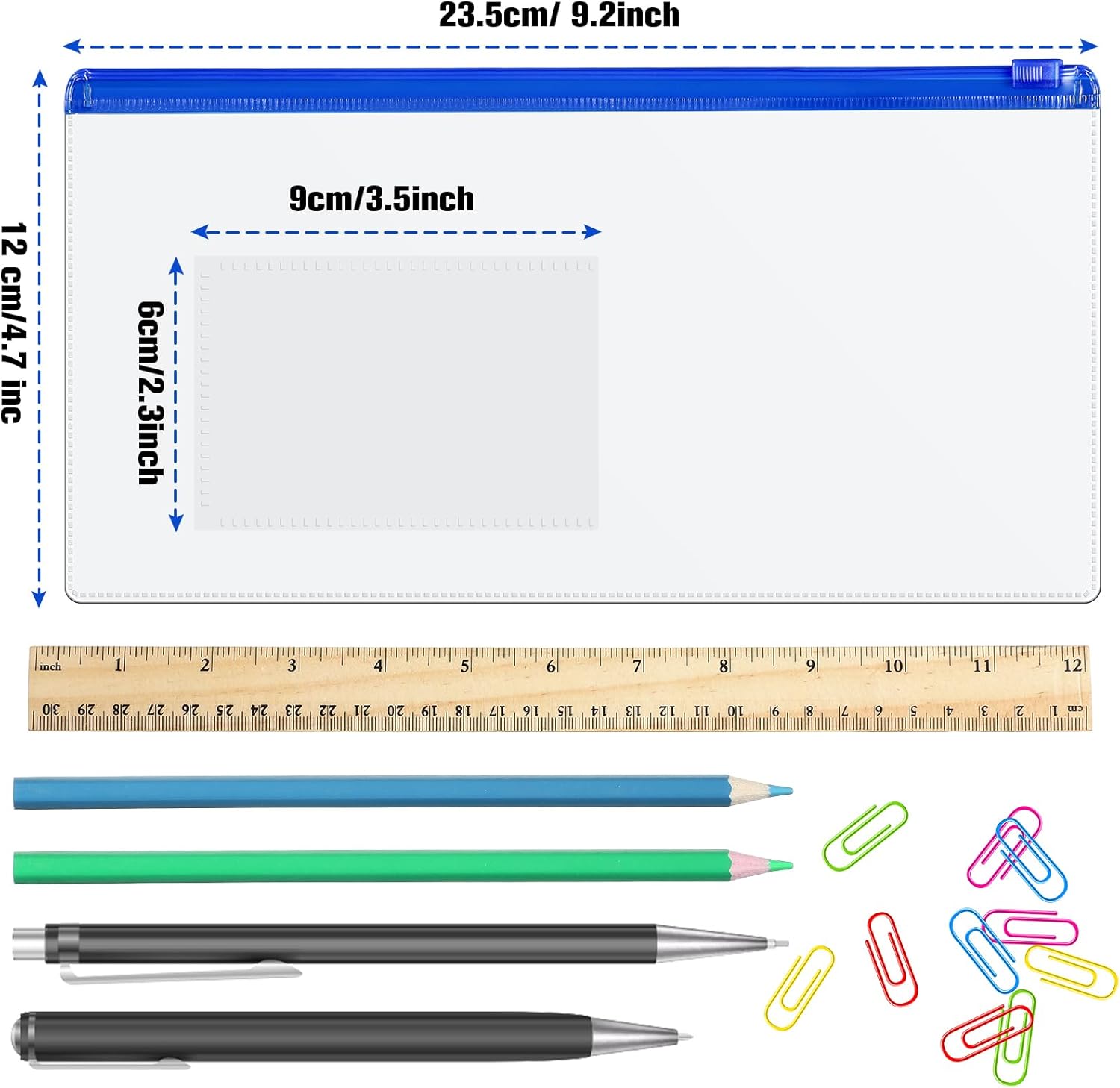 - Product size: the zipper envelopes are about 9.2 x 4.7 inch/ 23.5 x 12 cm in size, 1.4 x 3 inch/ 3.5 x 7.5 cm in business card pocket size on their surfaces, suitable for storing A6 size files and other items (thickness do not exceeded 3 cm