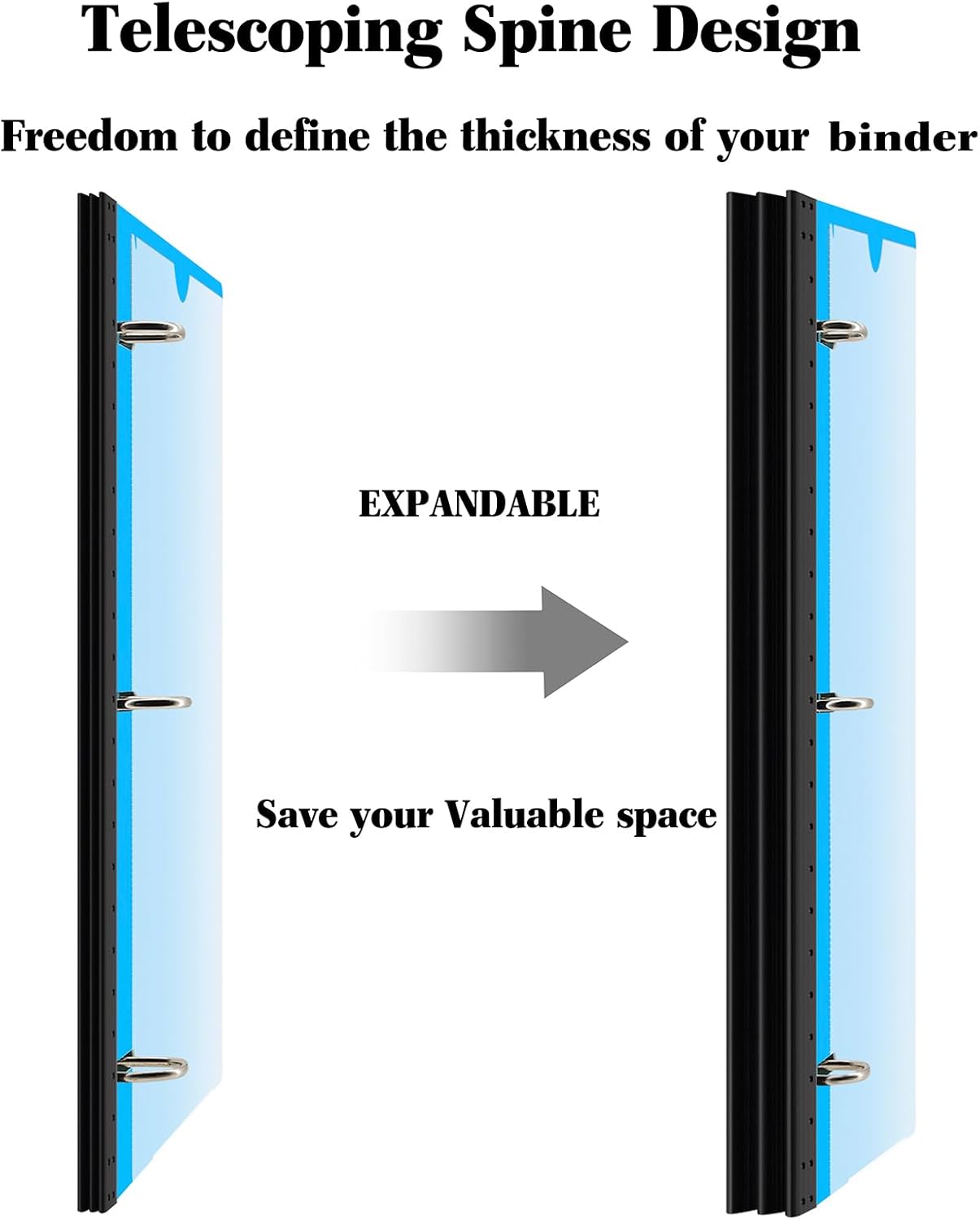 - Innovative Telescoping Spine Design : With this innovative design, you can easily customize the binder's capacity to fit your needs, whether you have a few papers or a larger collection. This allows for a compact and organized storage solution, eliminating unnecessary bulkiness.
