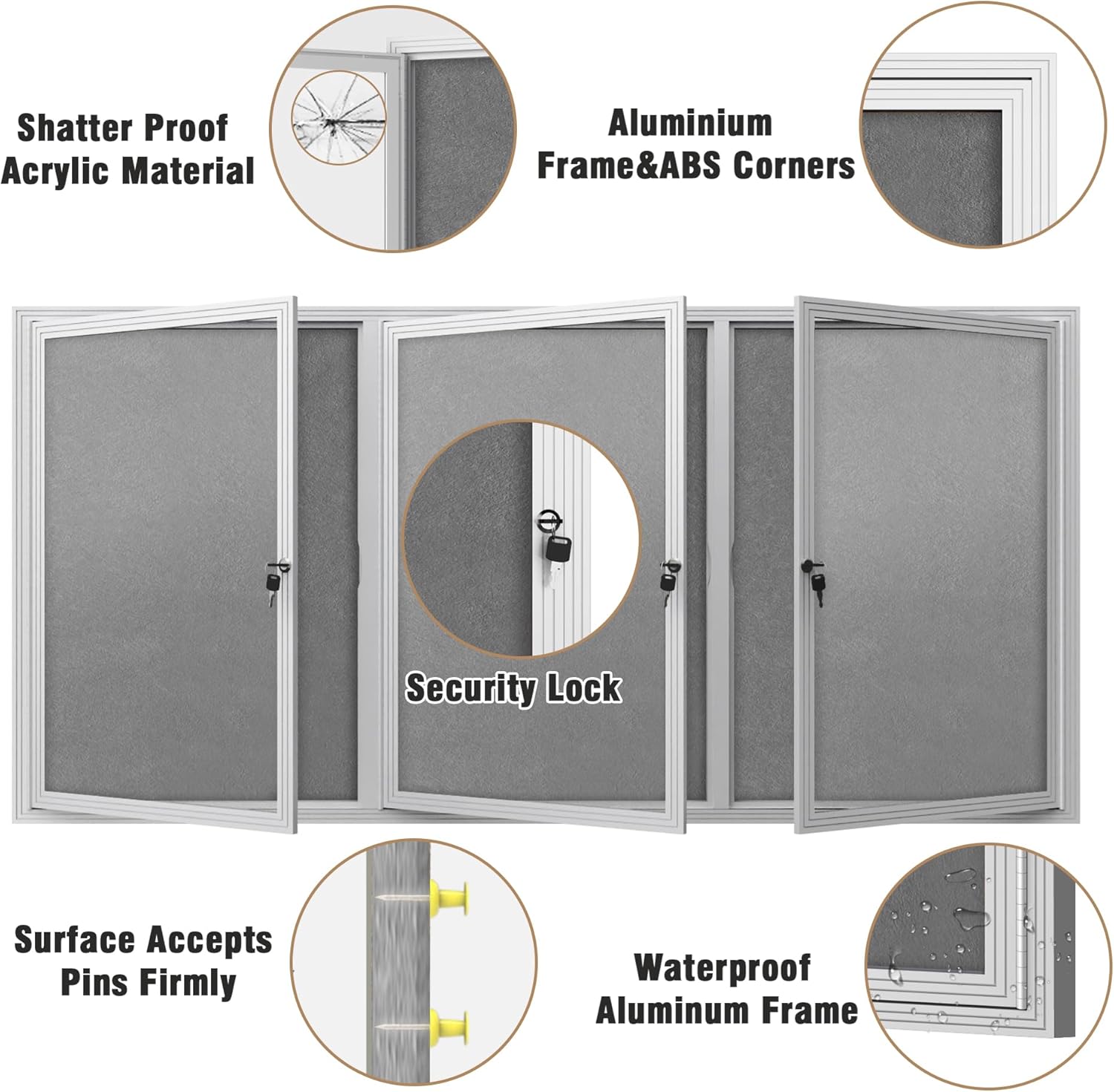 - 🌟✔【Secure Lockable Bulletin Board】: This lockable bulletin board ensures your notices are safe and can only be removed by authorized personnel. It's suitable for pushpins, thumbtacks, or map pins, making it ideal for displaying notes, messages, pictures, memos, calendars, menus, reminders, and more. Perfect for home, office, or commercial settings.