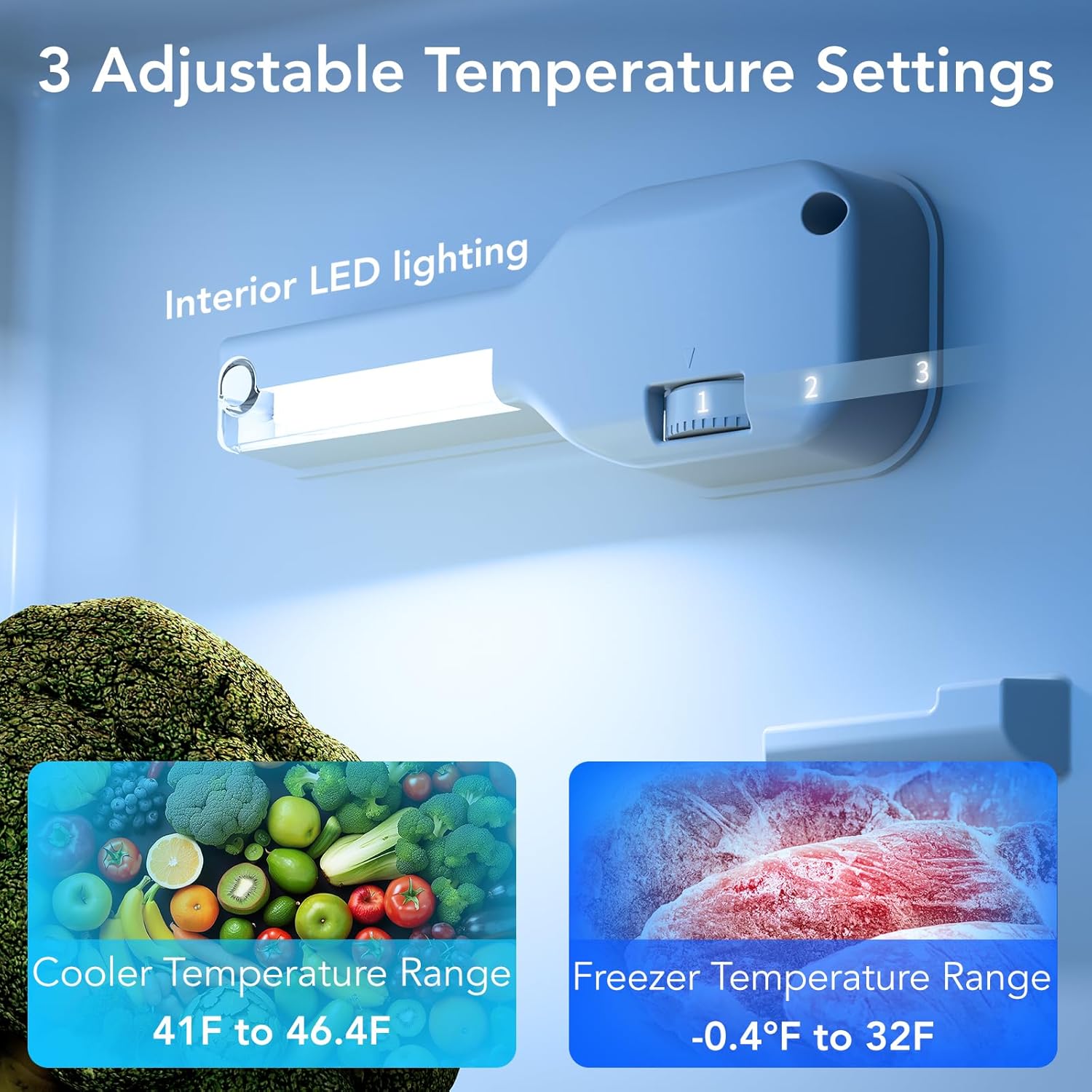 - The small refrigerator with thermostatic knob can be adjusted to 32Β°F to 50Β°F in the refrigerator compartment / 3Β°F to -1Β°F in the freezer compartment. Turn the thermostatic knob, meet the different temperature requirements of different foods.