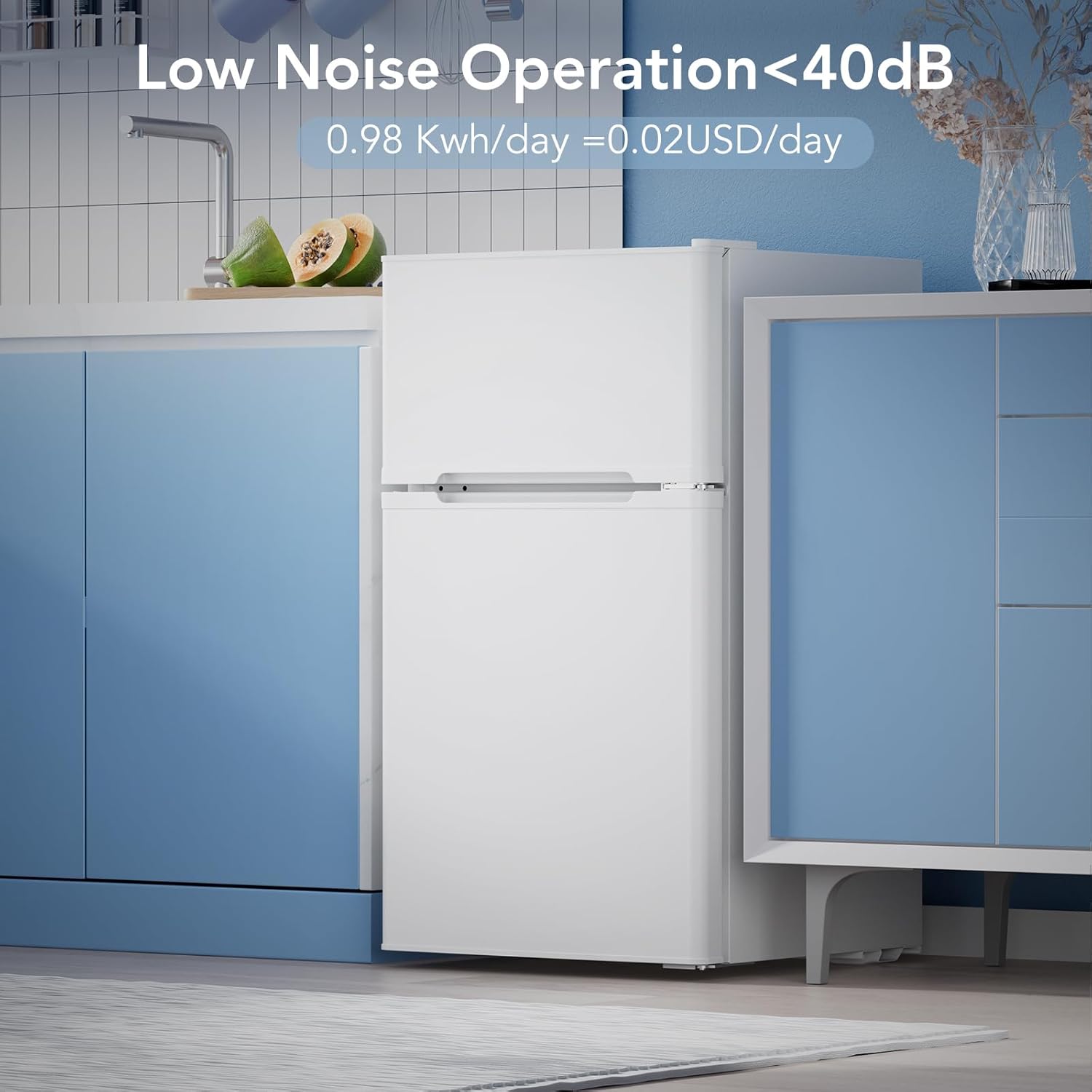 3.1 Cu.Ft Small Fridge with Freezer, Compact Refrigerator with 2 Doors, Mini Fridge with Adjustable Removable Glass Shelves for Bedroom, Dorm, Office or Apartment,White