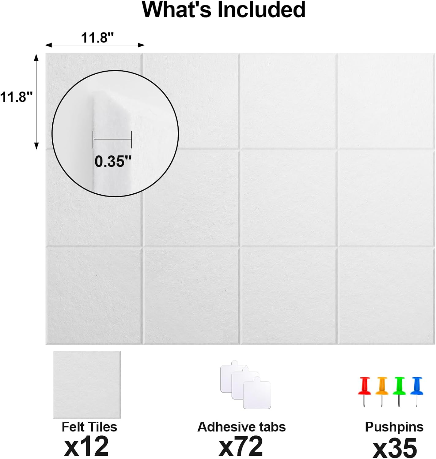 - LARGE CORK BOARD ALTERNATIVE: Each panel measures 11.8"x11.8"x 0.35", 12 felt panels, you can easily customize the size you need, with free combination splicing, and color splicing, such as 48"x36", 72"x48", 96"x48", etc.