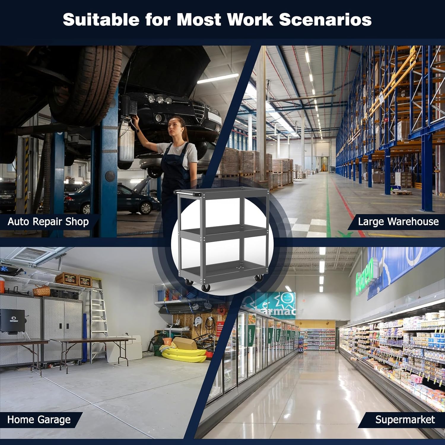 - [Ample Storage Space] Designed with three tiers, this heavy duty tool cart offers ample storage space to accommodate all your tools and supplies. Each tier features a spacious tray, allowing you to organize your tools and keep them easily accessible