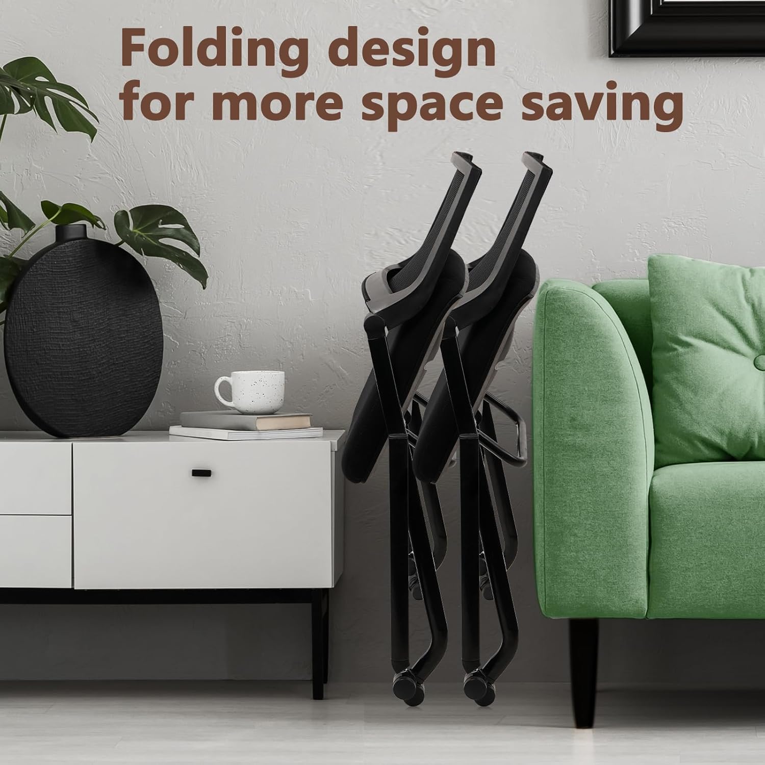 - 【FOLDABLE & STACKABLE CHAIRS】Conference room chairs with wheels, just need simple installation. Reception chairs fold and stack easily when not in use, a great solution for limited space, folding chair are perfect for offices and temporary events.