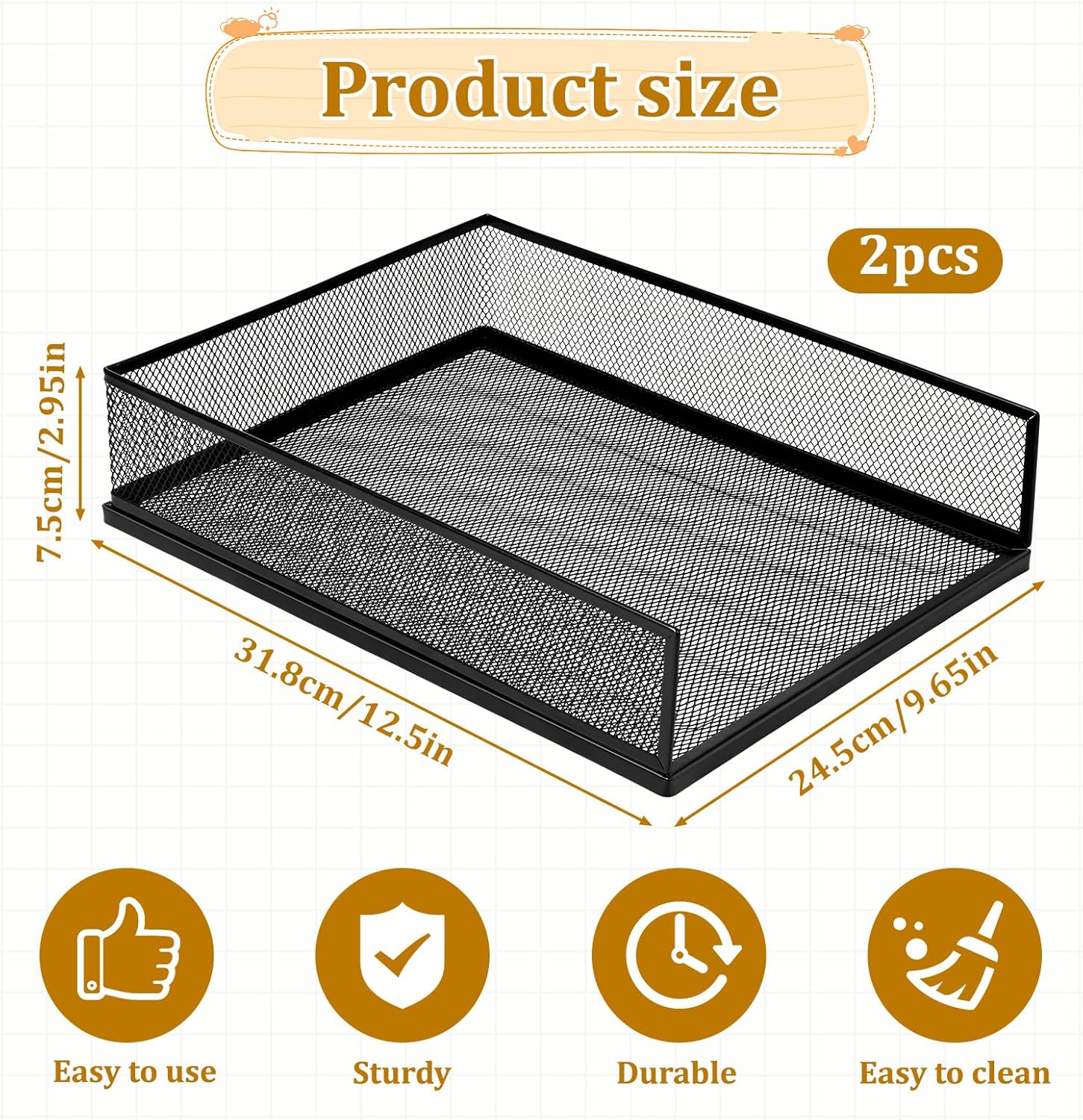 - Space-Saving Design & Easy Accessibility: The two-tiered, stackable design maximizes desk space and enhances organization. The modern metal mesh construction of desk organizer tray offers clear visibility of files and documents, ensuring effortless access and a clean, tidy workspace