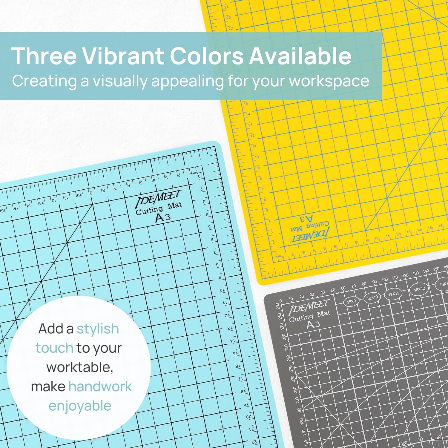 - 【Easy-to-read Scale Mark】Double-side clearly printed with inches, metric grid lines, and angles. The grid scale lines are printed in black, creating a sharp contrast with the aqua blue, making the scale and lines clearer and sharper, and easier to read. The glossy and smooth surface provides a non-slip, non-glare worktable. Perfect for artists, crafters, quilters, engravers, and hobbyists.