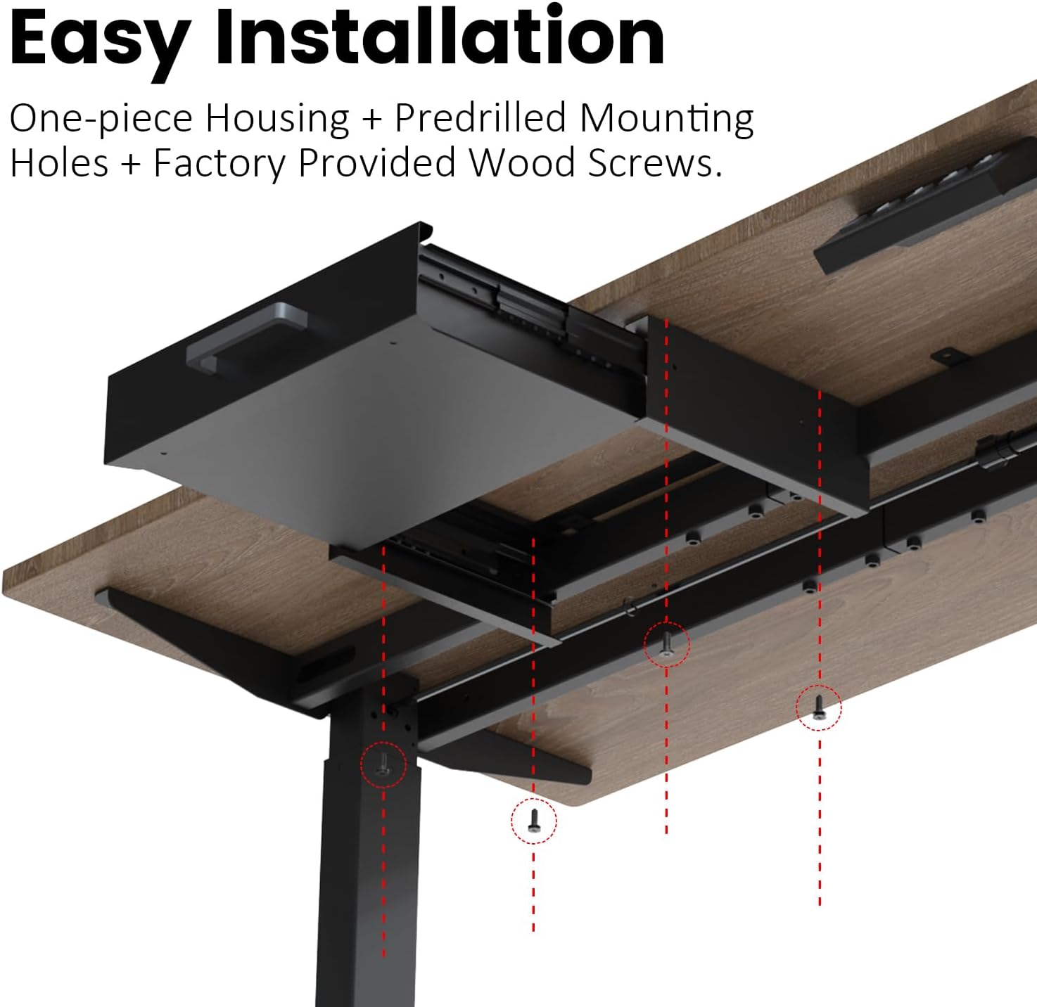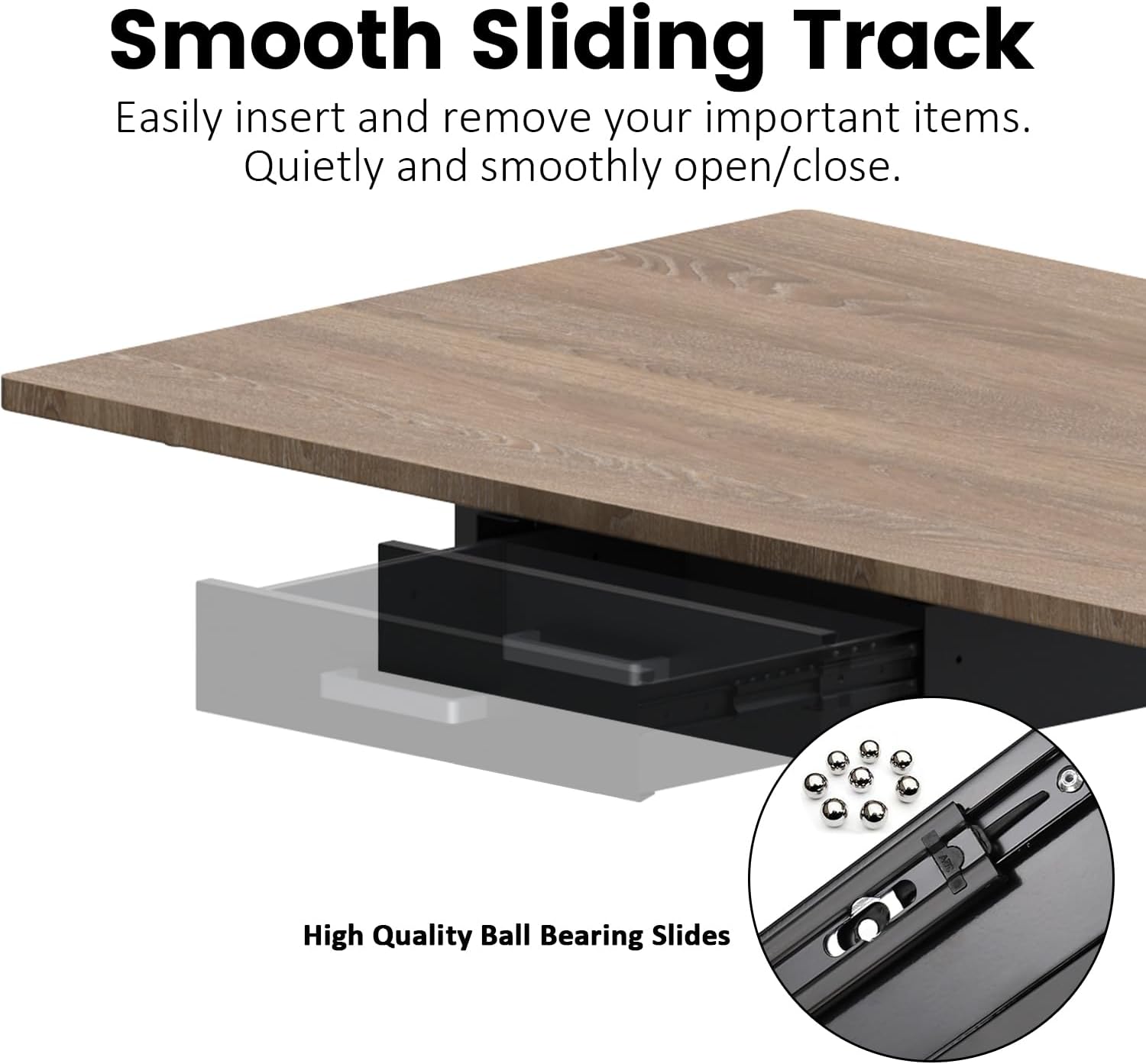 - Widely Use: The under standing desk drawer is designed to fit the Electric Standing Desk. It has a perfect installation size for most height adjustable standing desk, and a highly usable pull-out size. is a compact drawer to keep your commonly used items in