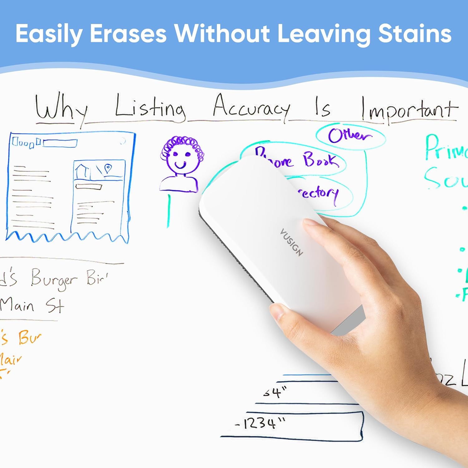 - Efficient cleaning: dry erase eraser can easily erases dry-erase ink without leaving streaks or residue, ensuring whiteboards stay clean and tidy for optimal presentation and readability.
