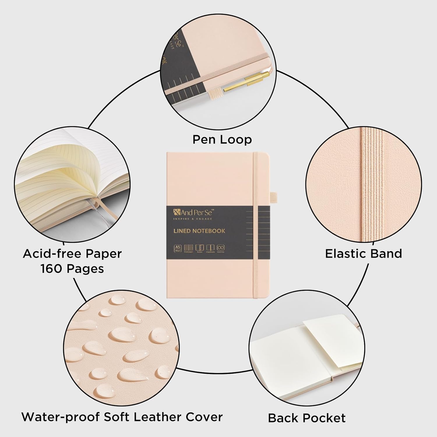 - 【CLASSIC LEATHER JOURNAL】This Journal notebook features water-resistant vegan leather cover, fashion and durable. An expandable back pocket holds notes, business cards, and small papers.
