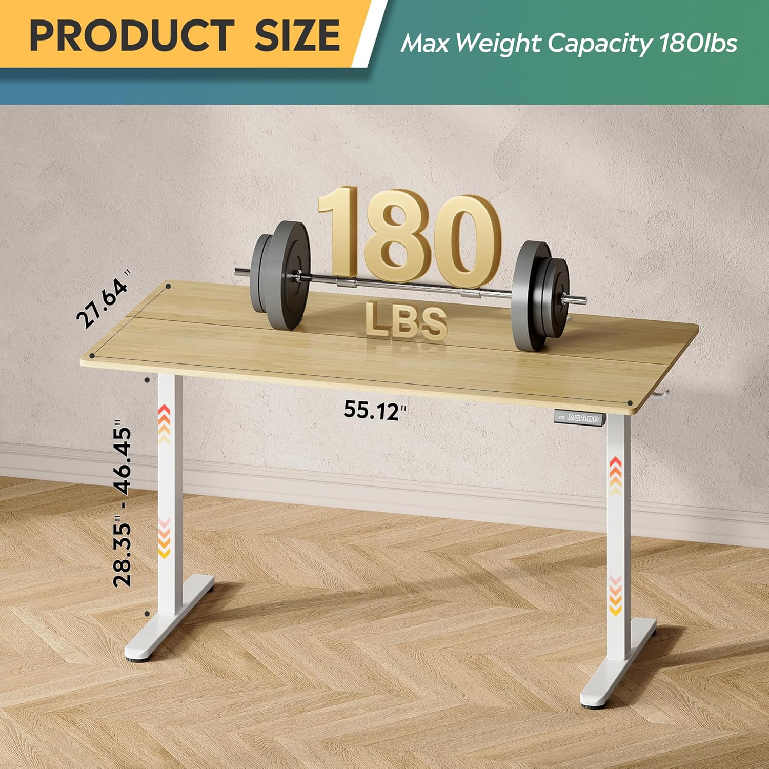 DEVAISE 55 Inch Electric Standing Desk, 3 Adjustable Height Stand up Desk for Home Office, Ergonomic Sit to Stand Desk with LED Touchscreen, Headphone Hook, 3 Memory Preset Computer Desk (Maple)