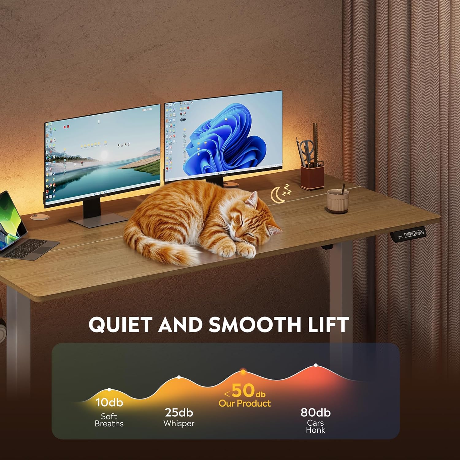 - ăQuite & Smooth Height AdjustmentsăTri-motor system delivers whisper-quiet (<50dB) height transitions (28.35"-46.45") in seconds, eliminating manual adjustments and prevent desktop tilting. Standing desk adjustable height perfected for ergonomic shifts, ensuring buttery-smooth operation whether sitting or standing.