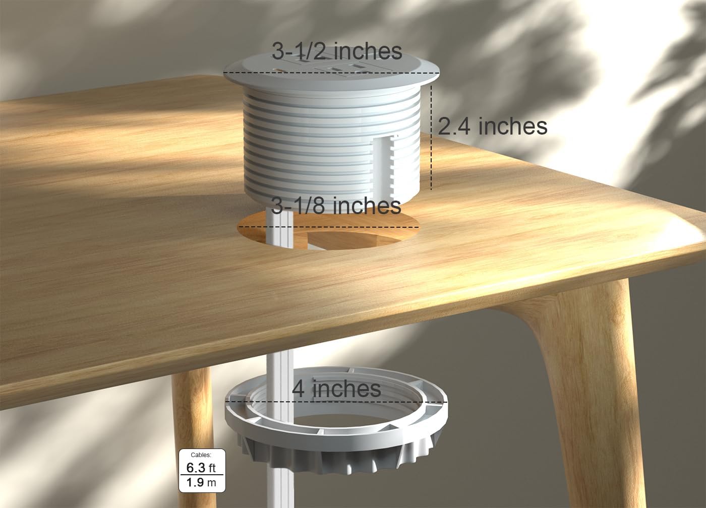- Super easy installation - Insert the desktop power grommet into the 3-1/8-inch desk grommet hole,rotary locking ring