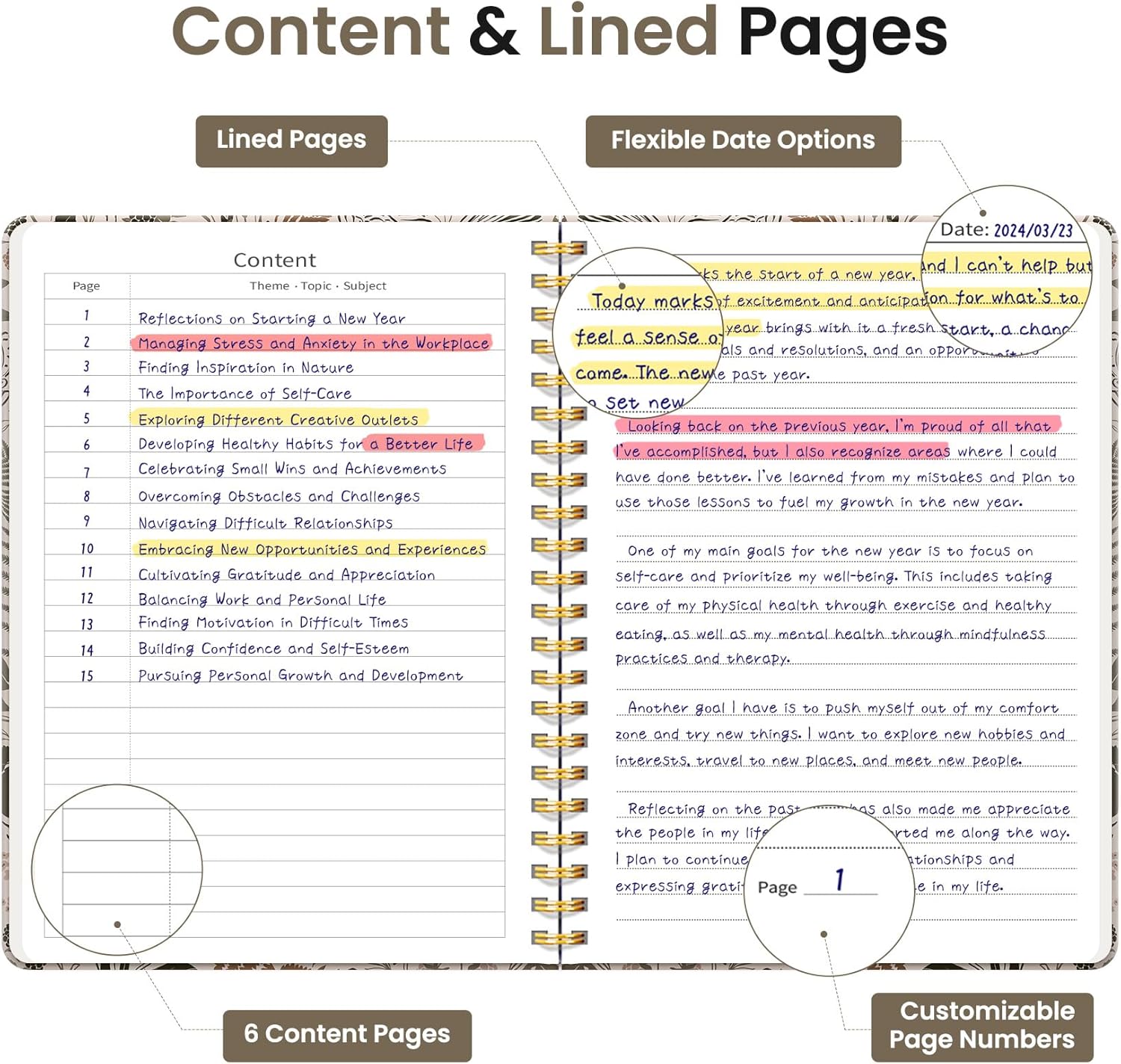 - Organized and Functional Design: With 140 lined pages and a 6-page blank table of contents, our notebook offers ample space for note-taking and easy referencing. An inner pocket keeps miscellaneous items secure, and an elastic closure band ensures the notebook stays closed when not in use.