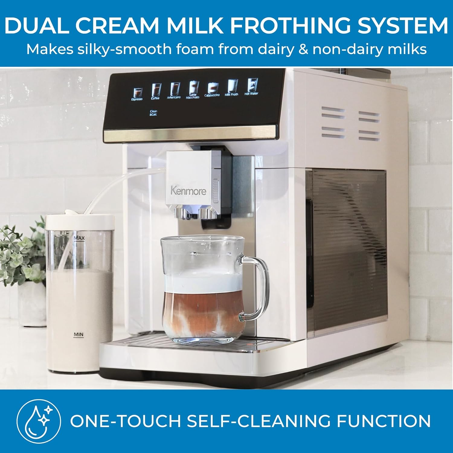 - DUAL CREAM SYSTEM - the dual cream system heats and froths all kinds of milk, including dairy, soy, oat, and almond, into silky, smooth foam. the detachable 20 oz milk canister has an airtight plug for easy storage in the refrigerator, ensuring your milk stays fresh and ready for use.