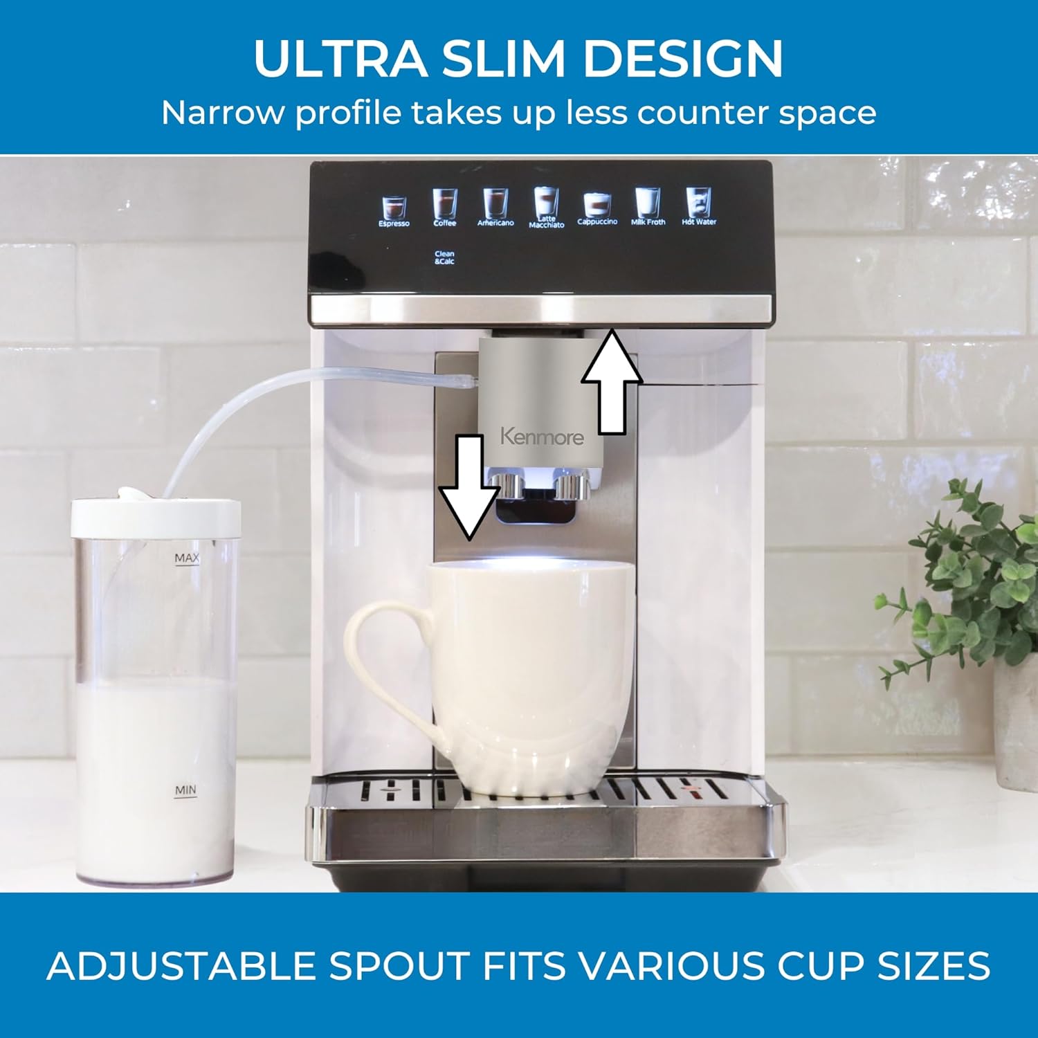 - ULTRA SLIM COMPACT DESIGN - at less than 9 inches wide, this fully automatic beverage center takes up minimal counter space. the adjustable height brewing outlet fits various sized cups, making it versatile and space-efficient for any kitchen setup.