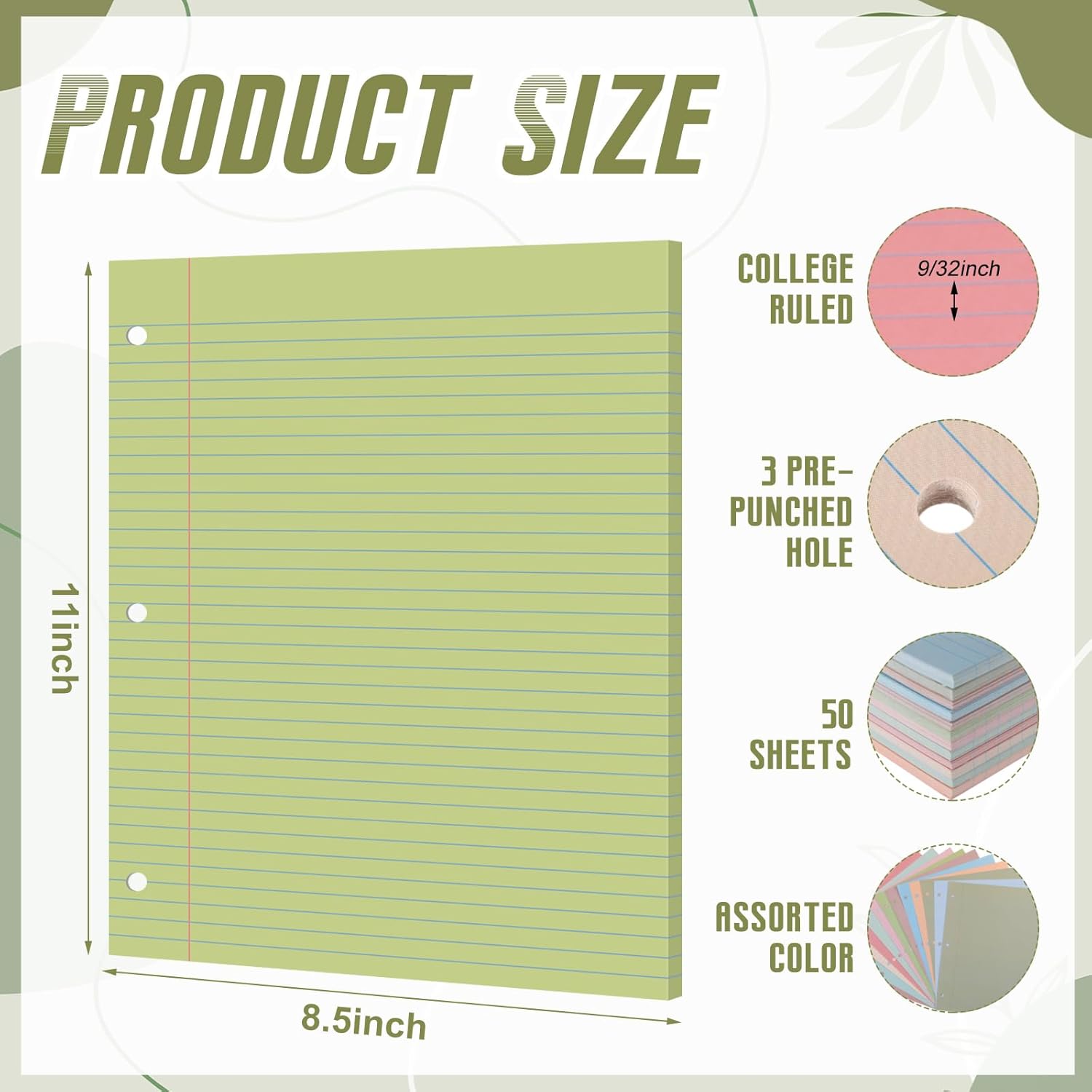 - Compatible with Ring Binders: our college ruled paper has 3 punched holes, making it fit standard ring binders and pocket folders with fasteners, and it can also be applied as standalone sheets