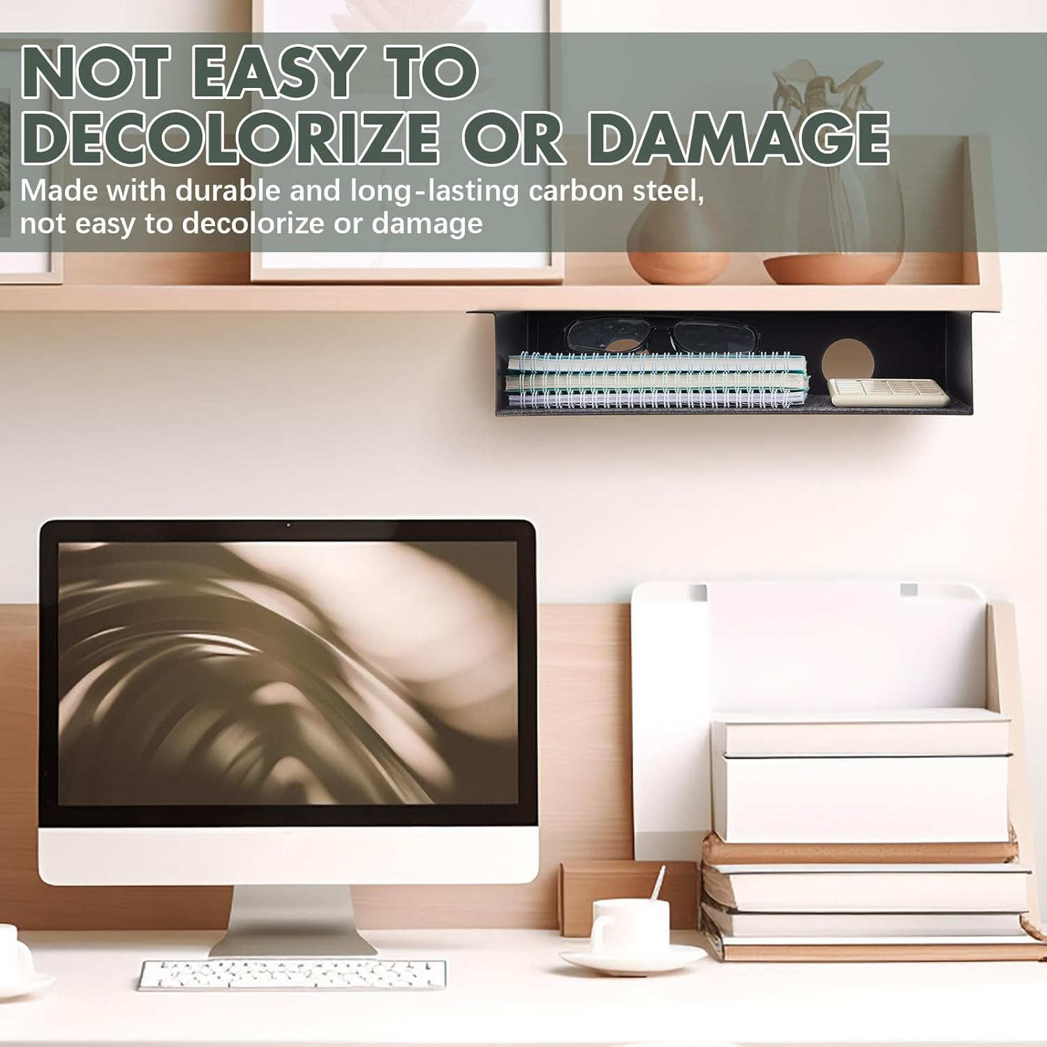 - Quality Carbon Steel Material: the under-desk storage is made with durable and long-lasting carbon steel that is not easy to decolorize or damage; This black, sleek design not only enhances your office decoration but also ensures longevity and resilience for your daily storage needs