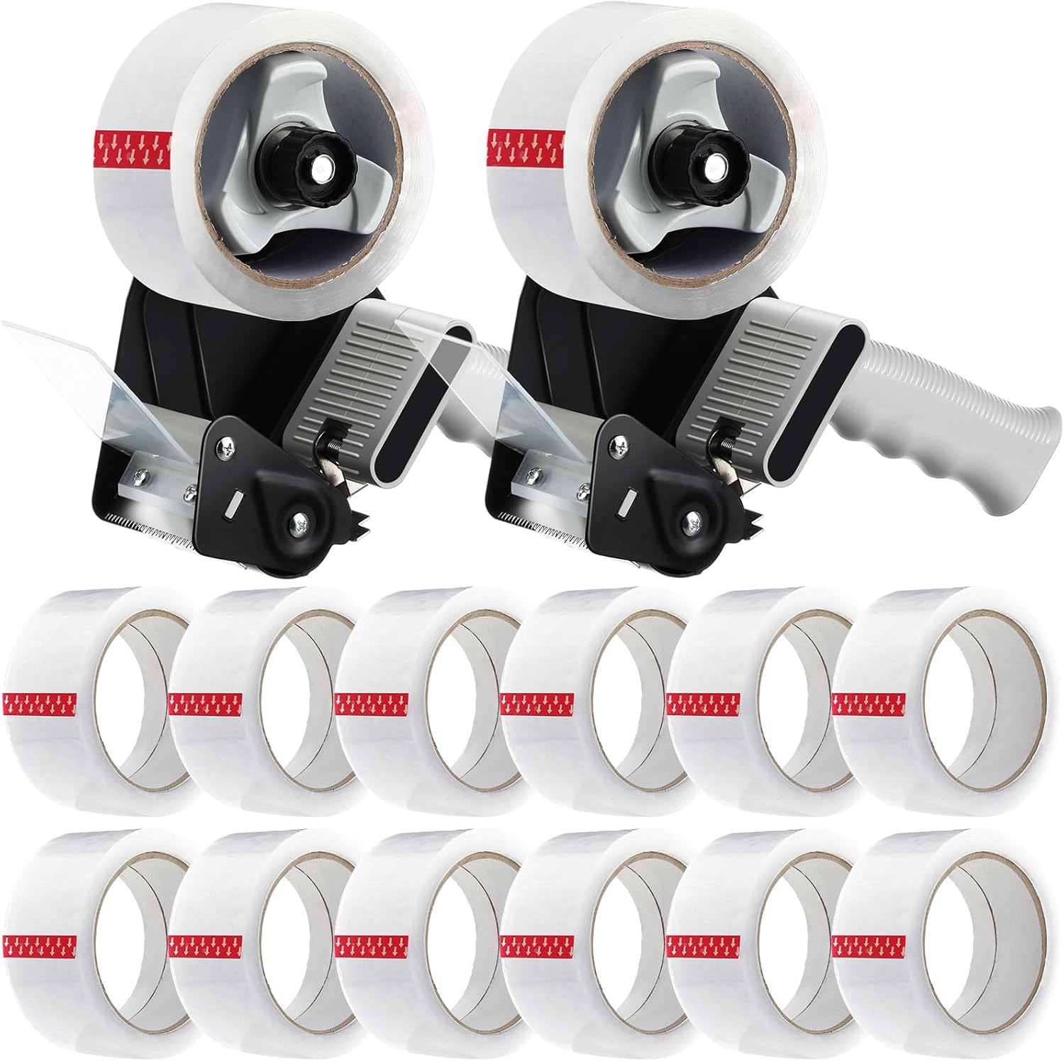 2 Pack Packing Tape Dispenser Gun with 12 Roll Packing Tape 2 Inch Gun 2.7 Mil Heavy Duty Packaging for Shipping, Moving, Carton and Box Sealing(Black)