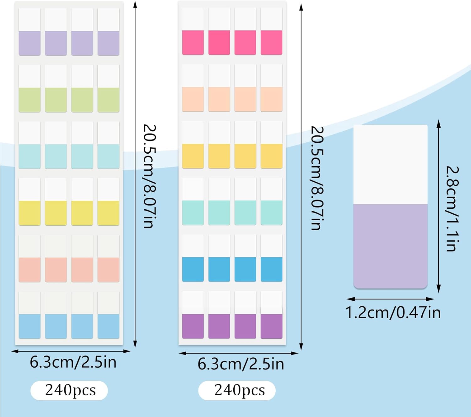 480 Pcs Sticky Index Tabs, Colored Book Sticky Tabs for Notebooks, Repositionable Page Tabs for Notebooks File Classification (0.5×1inch)
