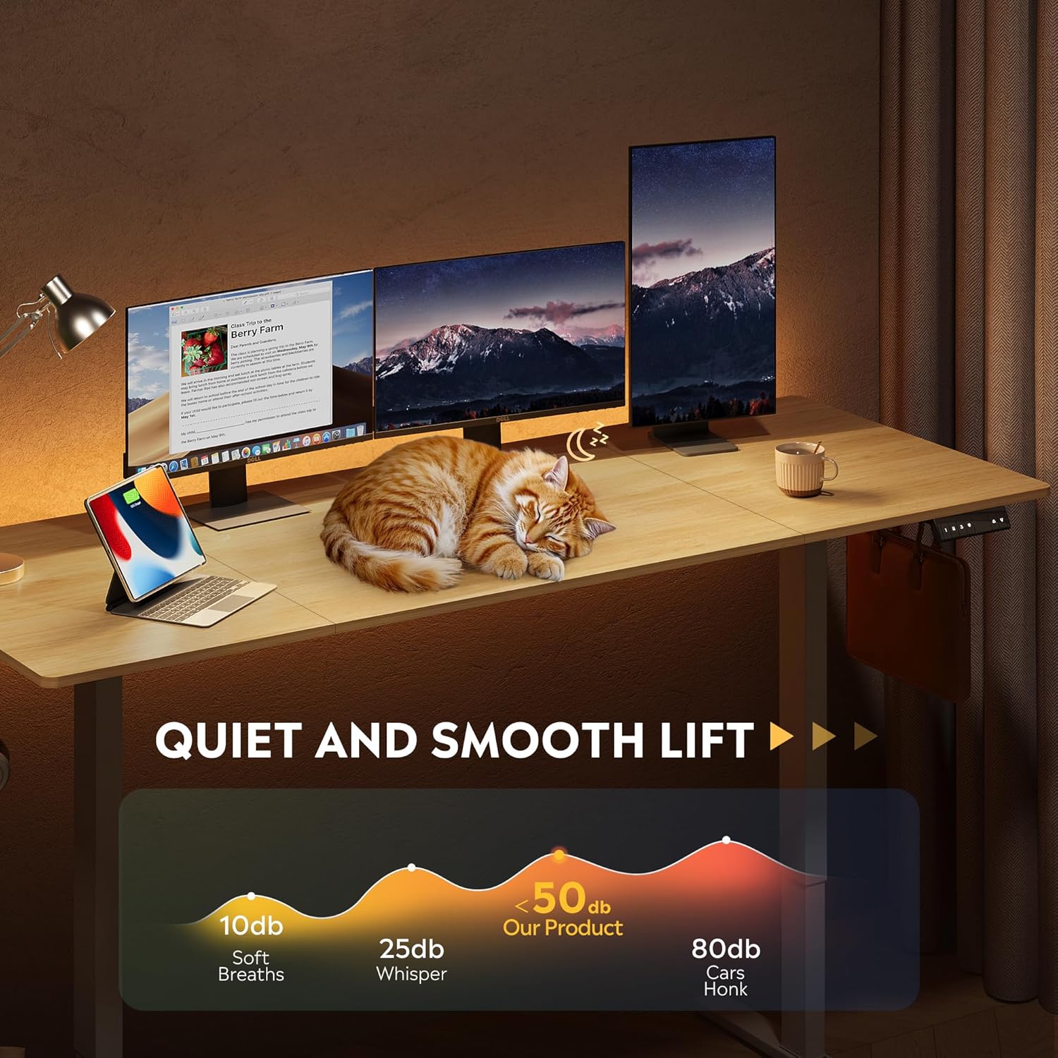 - ăQuite & Smooth Height AdjustmentsăTri-motor system delivers whisper-quiet (<50dB) height transitions (28.35"-46.45") in seconds, eliminating manual adjustments and prevent desktop tilting. Standing desk adjustable height perfected for ergonomic shifts, ensuring buttery-smooth operation whether sitting or standing.