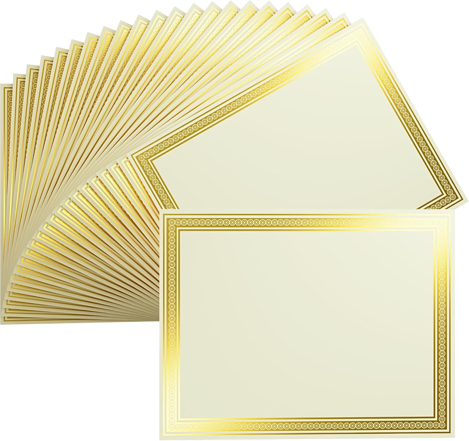 100 Count Certificate Paper 8.5 x 11 for Printing,Blank Gold Foil Border,Award Certificate Paper for Business,Graduation Diploma,School and Achievement (Ivory)
