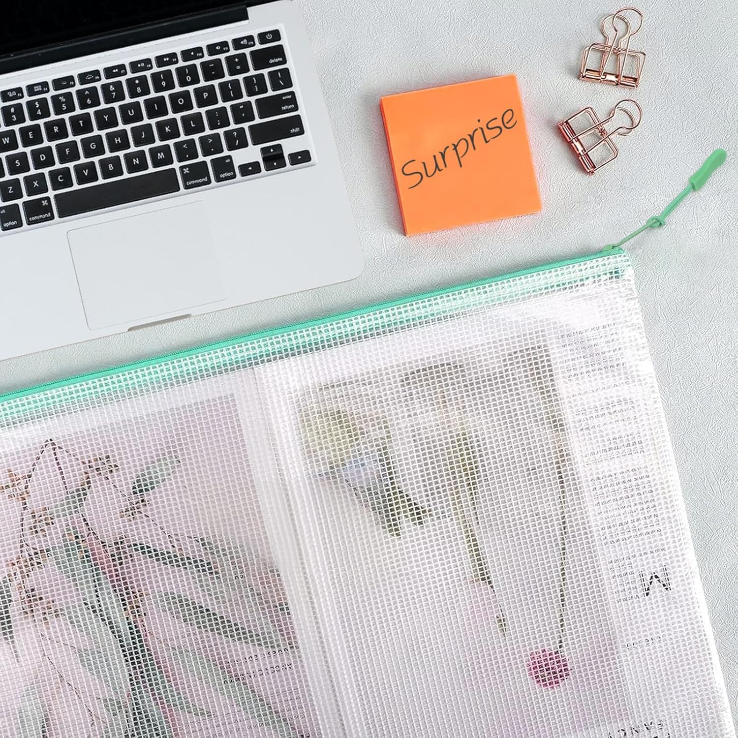 24pcs Mesh Zipper Pouch, Puzzle Storage Bags, A3 17x12 Inches Large Reusable Zipper Pouches for for Classroom Office Supplies Organizing, Extra Large Zipper Bags, Board Game Storage(8 Color)