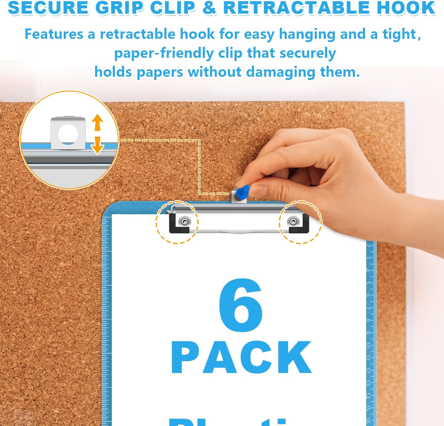 TOTiyea Clipboard (Set of 6), 12.5 x 9 Inch Multi Color, Plastic Clipboard with Low Profile Clip, 75 Sheets Capacity, Standard Letter Size A4