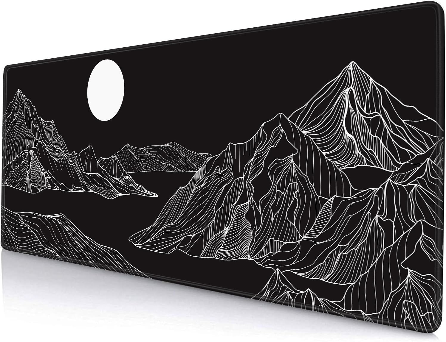 Large Mouse Pad Gaming, Mousepad with Stitched Edges, Non-Slip Rubber Base Keyboard Mouse Mat Desk Pad for Work, Game, Office, Home, Black and White Abstract Mountain