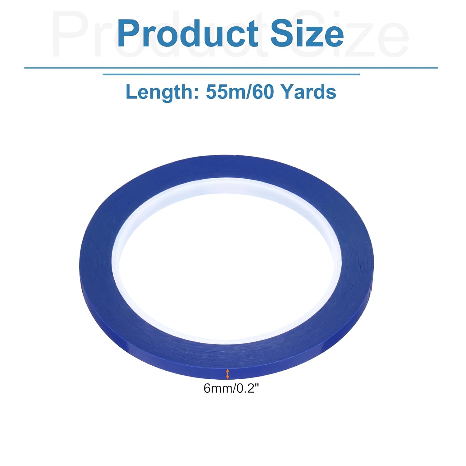 - Color:Blue;Width: 6mm/0.2 Inch;Length: 55m/60 Yards;Thickness: about 0.06mm/0.002inch;Heat resistance: about 120Β°C/ 248Β°F;Type: One-side self-adhesive design;Material: PET;Package Content:1 Rolls x Whiteboard Tape;