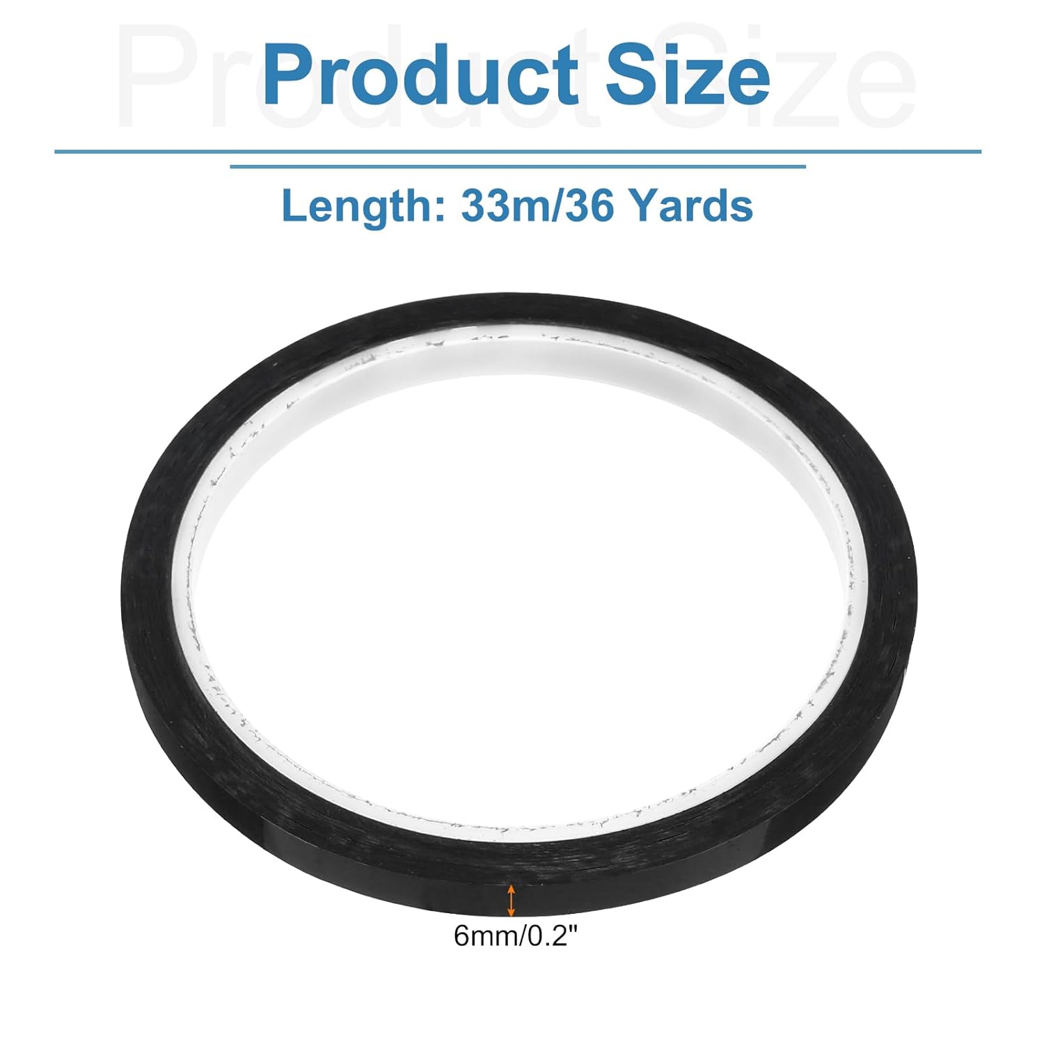 - Color:Black;Width: 6mm/0.2 Inch;Length: 33m/36 Yards;Thickness: about 0.06mm/0.002inch;Heat resistance: about 120Β°C/ 248Β°F;Type: One-side self-adhesive design;Material: PET;Package Content:1 Rolls x Whiteboard Tape;