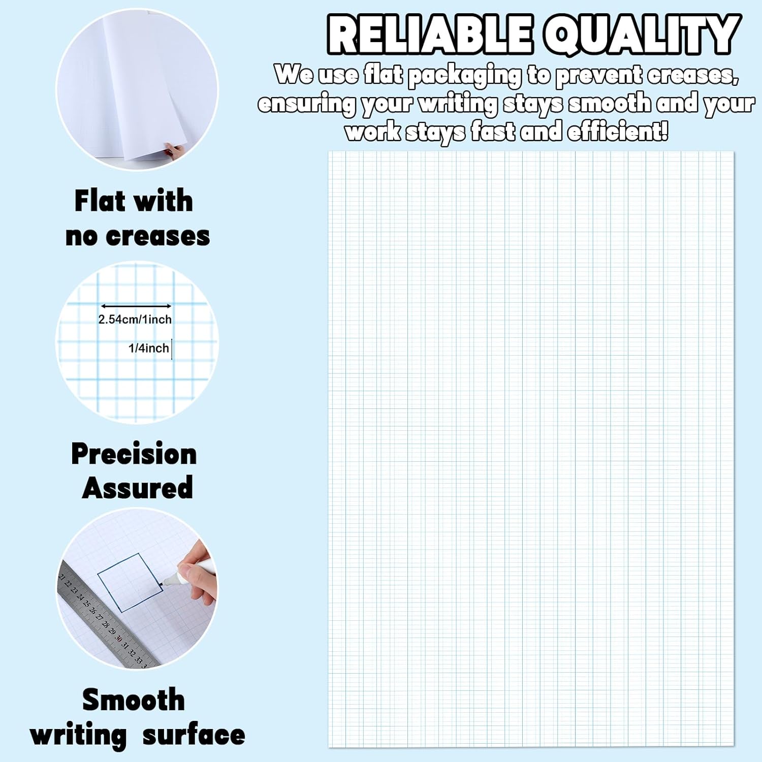 - High Quality Materials: Crafted from high-quality paper, the large grid paper sheet ensures smooth writing and drawing. The clear, durable grid pattern offers consistent results, while the thick grid paper prevents ink bleed-through, making our graph paper for drafting a reliable choice for both professionals and students.