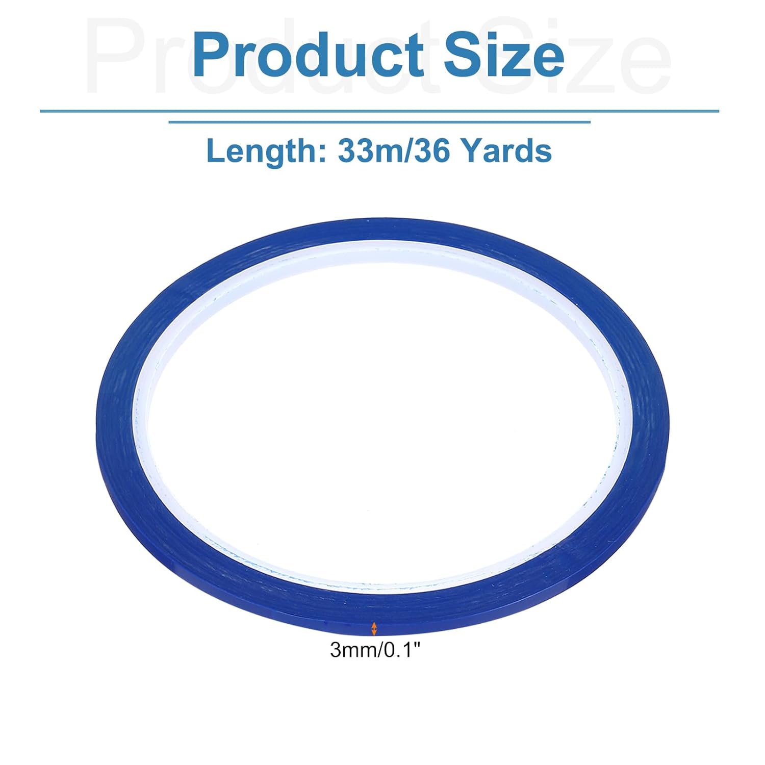 - Color:Blue;Width: 3mm/0.1 Inch;Length: 33m/36 Yards;Thickness: about 0.06mm/0.002inch;Heat resistance: about 120Β°C/ 248Β°F;Type: One-side self-adhesive design;Material: PET;Package Content:1 Rolls x Whiteboard Tape;