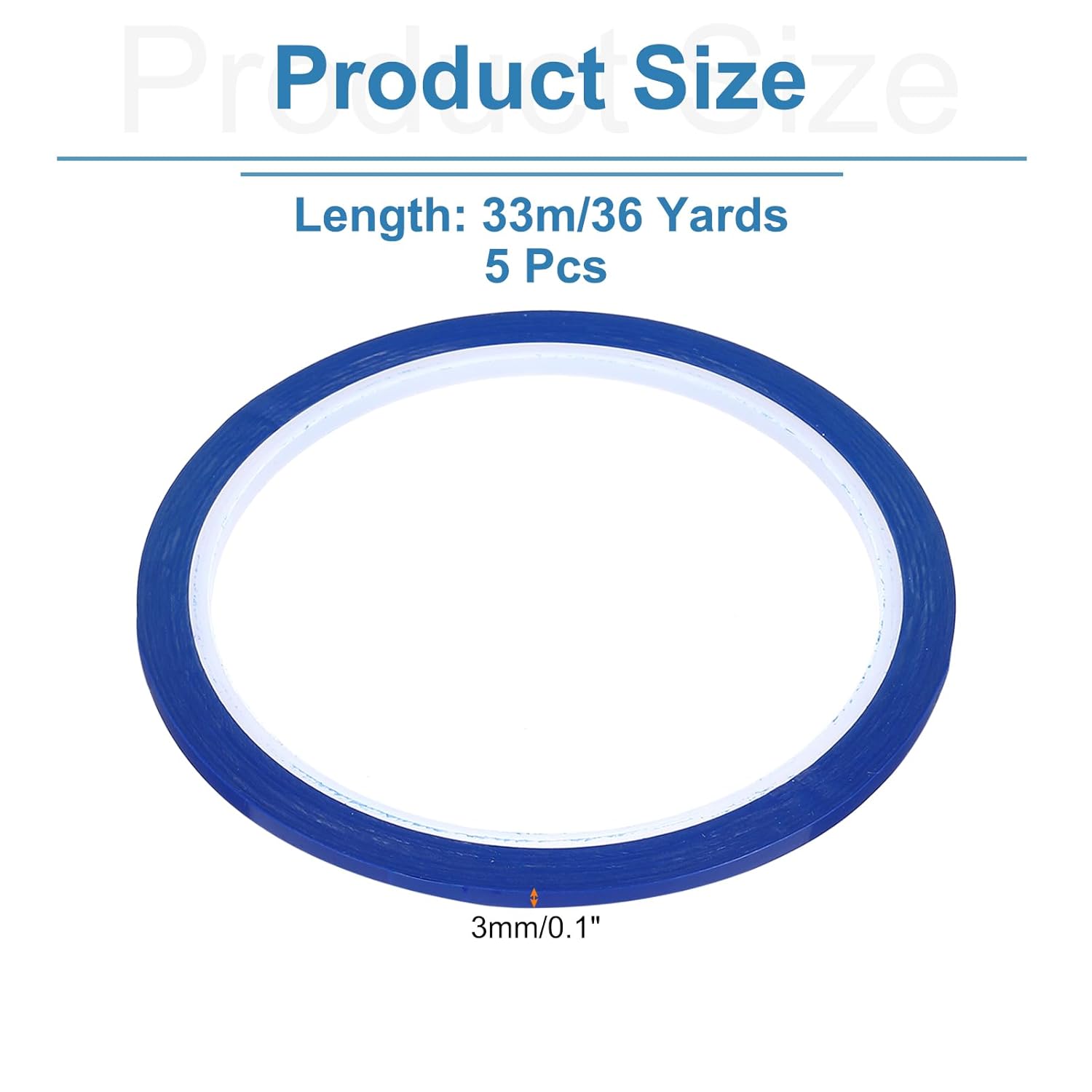 - Color:Blue;Width: 3mm/0.1 Inch;Length: 33m/36 Yards;Thickness: about 0.06mm/0.002inch;Heat resistance: about 120Β°C/ 248Β°F;Type: One-side self-adhesive design;Material: PET;Package Content:5 Rolls x Whiteboard Tape;