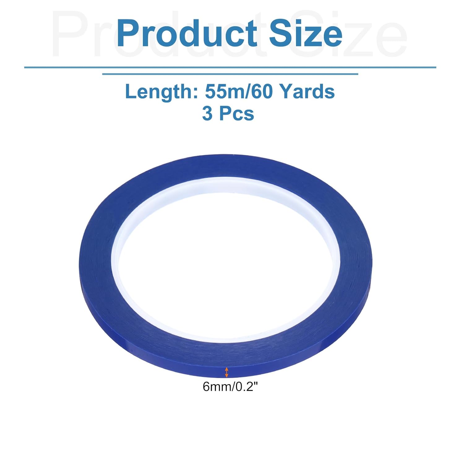 - Color:Blue;Width: 6mm/0.2 Inch;Length: 55m/60 Yards;Thickness: about 0.06mm/0.002inch;Heat resistance: about 120Β°C/ 248Β°F;Type: One-side self-adhesive design;Material: PET;Package Content:3 Rolls x Whiteboard Tape;