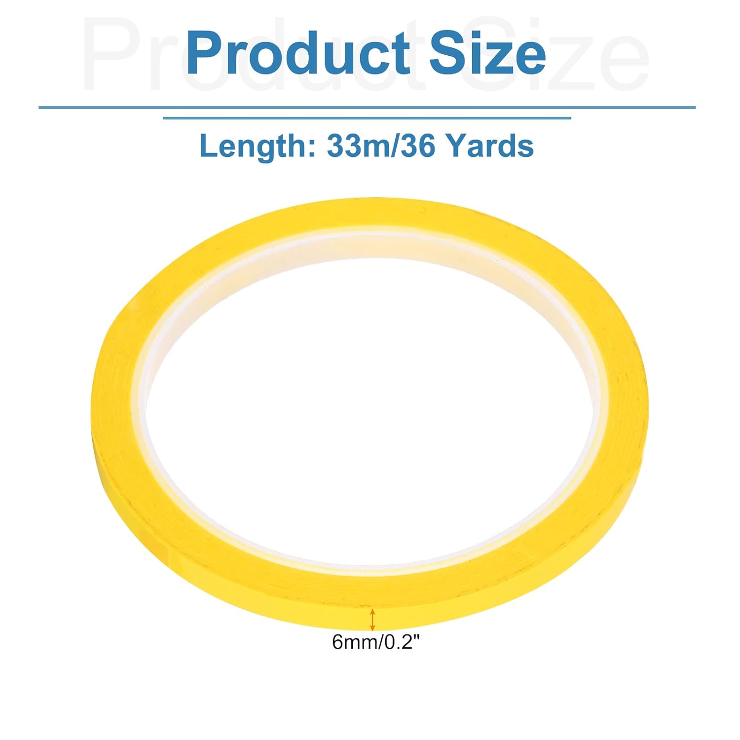 - Color:Dark Yellow;Width: 6mm/0.2 Inch;Length: 33m/36 Yards;Thickness: about 0.06mm/0.002inch;Heat resistance: about 120Β°C/ 248Β°F;Type: One-side self-adhesive design;Material: PET;Package Content:1 Rolls x Whiteboard Tape;