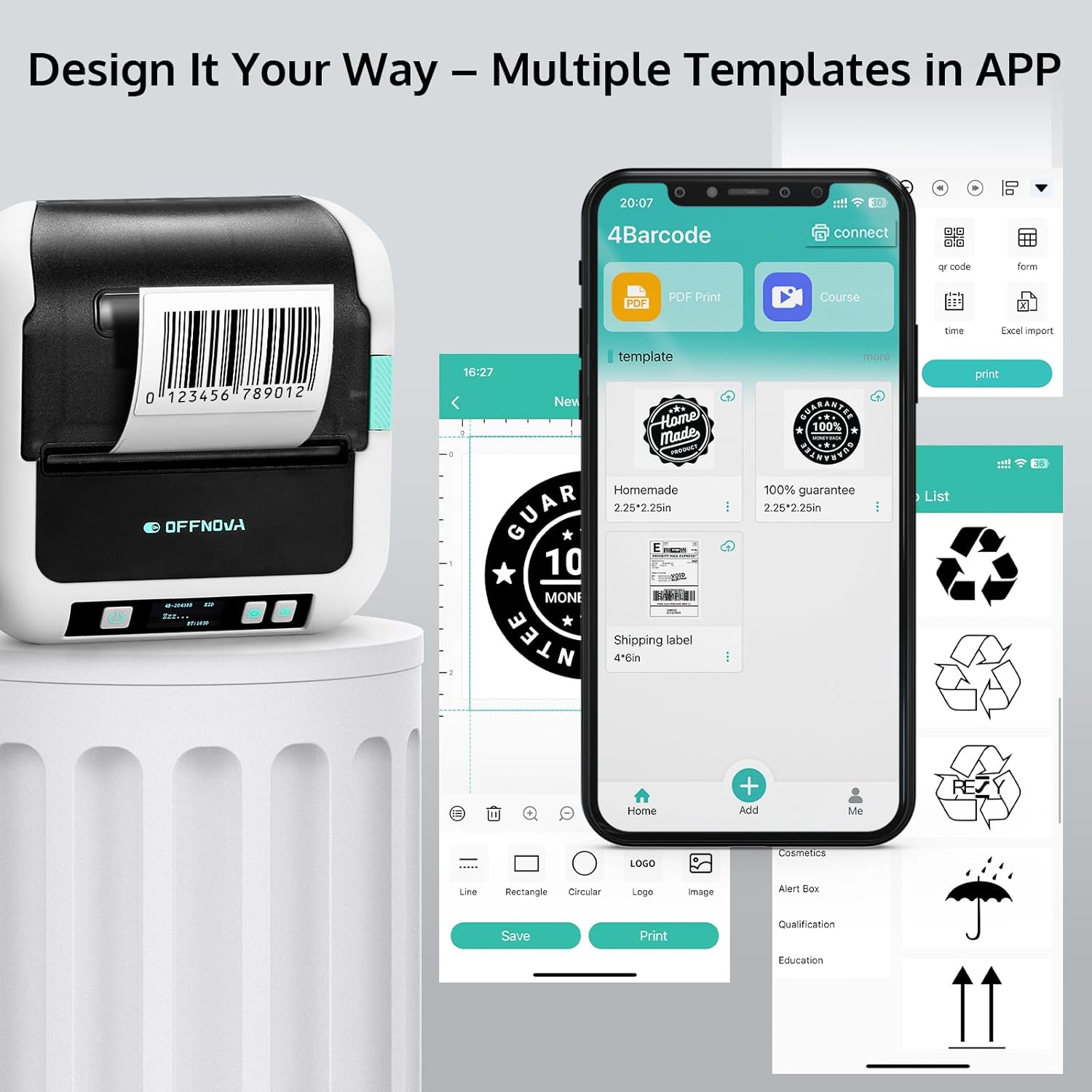 - Easy Mobile Setupâ Get started in just 3 steps: â Download the â4Barcodeâ app ⥠Turn on the printer and Bluetooth ⢠Connect, customize, and print directly from your phone or tabletâdesigned for users of all levels.