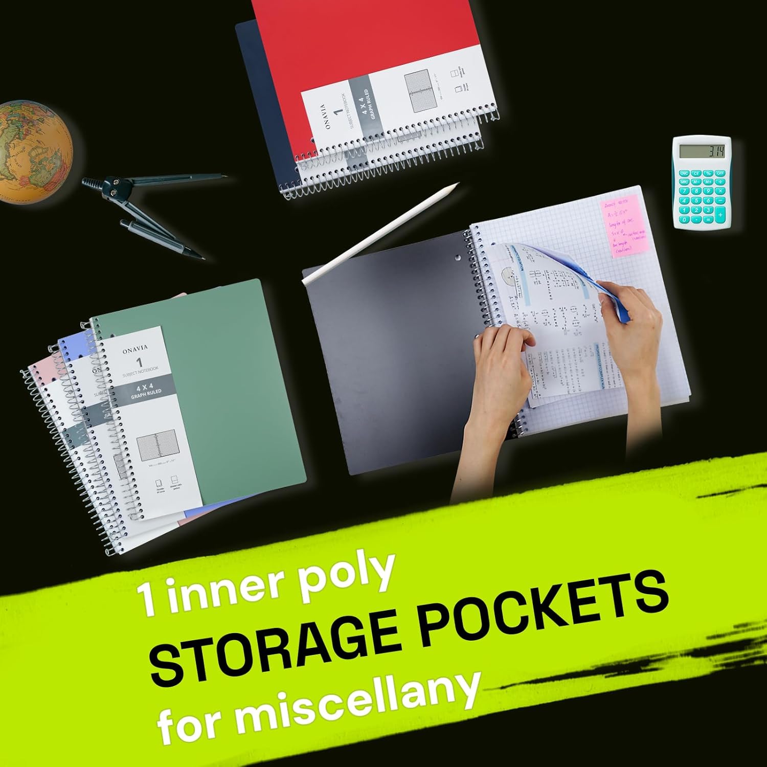 - FUNCTIONAL DIVIDERS WITH POCKETS: 1 subject graph paper notebook with 1 pocket divider, double-sided pocket for 9" x 11" loose paper, notes, handouts