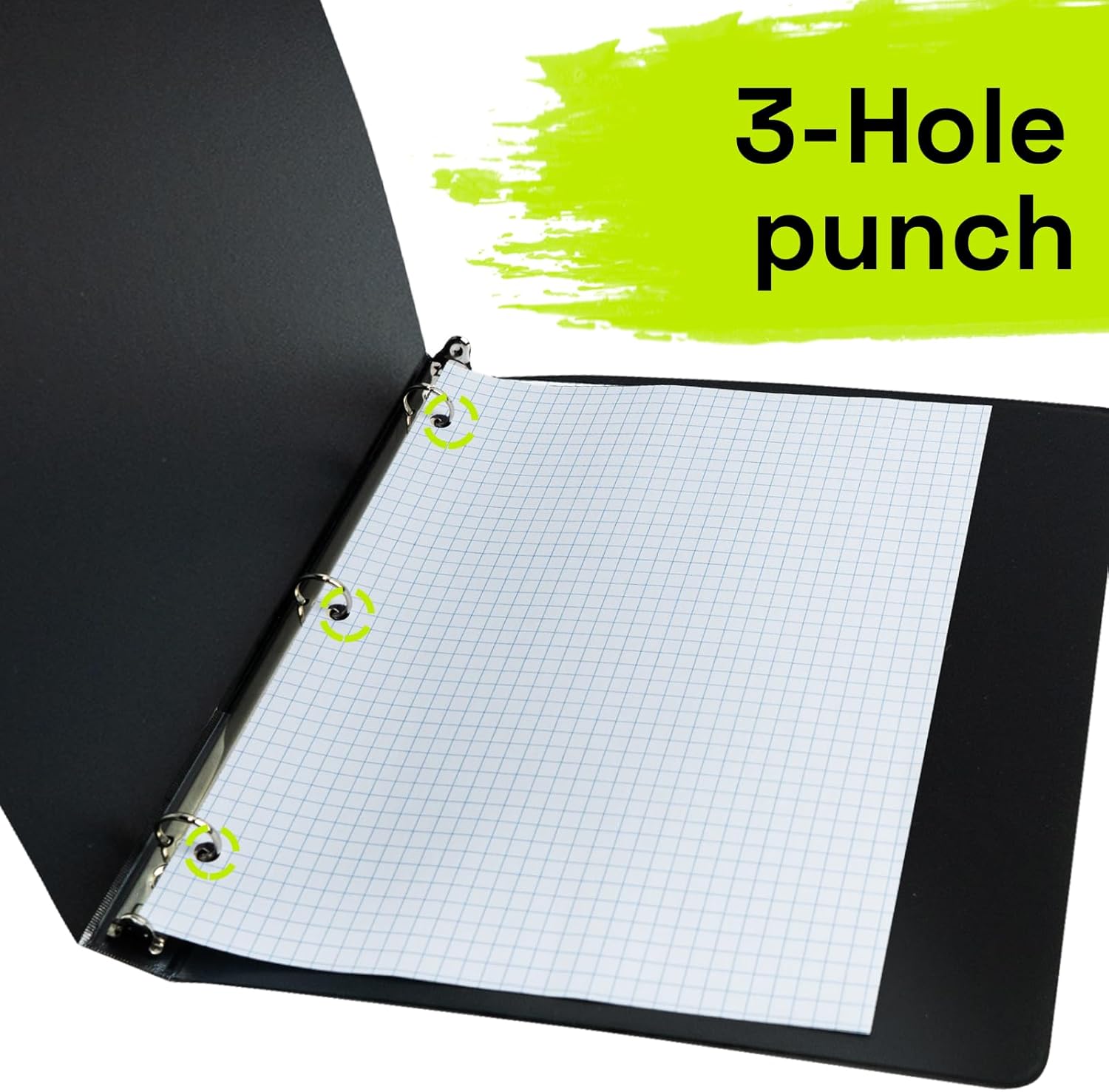 - 3-HOLE PUNCHED PAGES + MICRO-PERFORATED EDGES: These high-efficiency designs let you tear out 11" x 8 1/2" sheets cleanly for binders or submissions, or easily organize and store your notes in a 3-ring standard binder, reducing clutter in your study or work area. Graph paper with 4x4 squares maximize writing space without crowding—ideal for graphing, note taking, math assignments