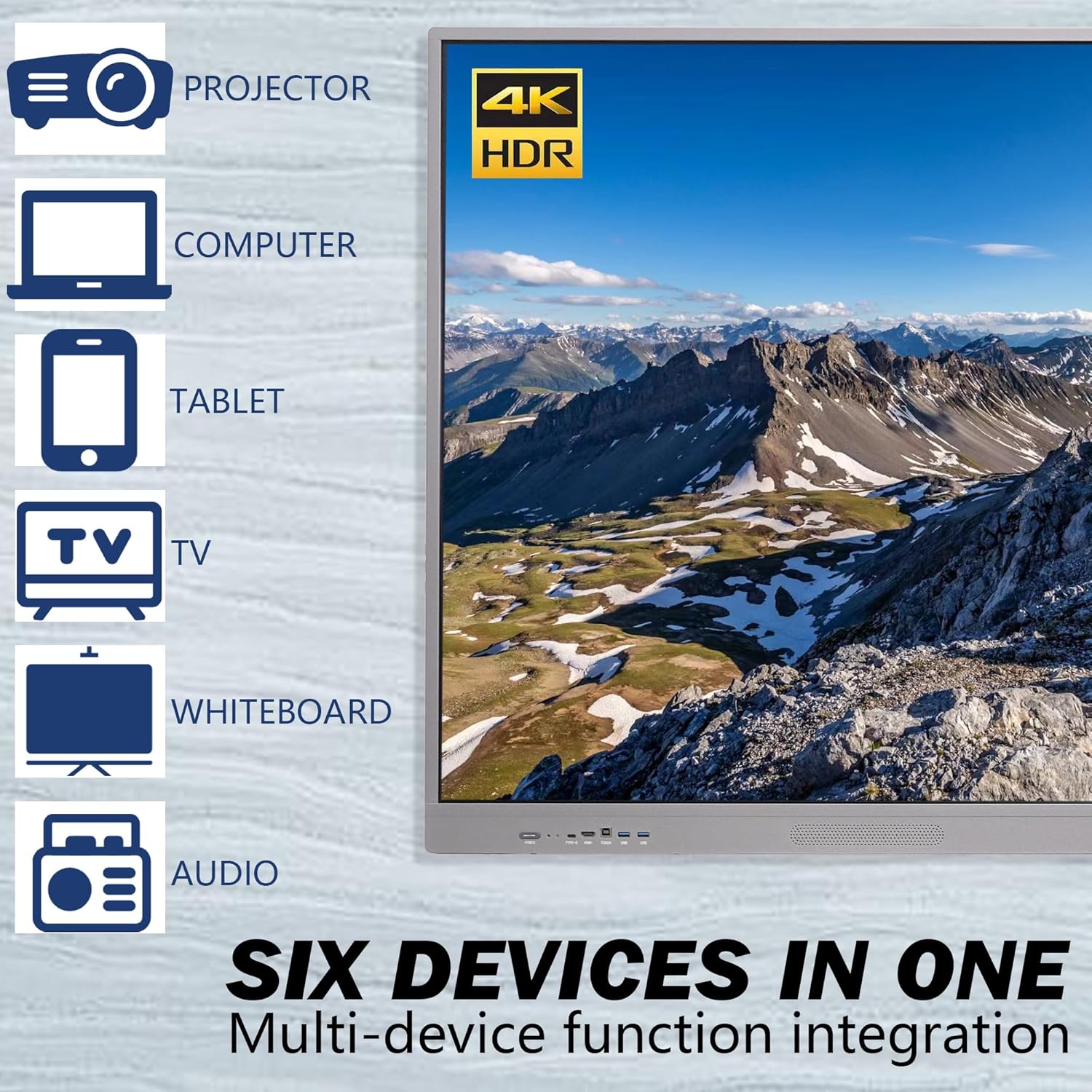 - ✔QUALITY ASSURANCE - 4mm thickness standard toughened glass, Aluminum alloy body make it very durable. SELFIE CAT 55'' touchscreen display board has passed a series of quality certifications such as FCC, CE, RoHS, 3C,etc. .Packing list: 1*Smart Whiteboard, 1*Wall Mount, 1*Ordinary Stylus, 1*Remote Control, 1*English Instructions. R&D engineers solve your problems 24 hours.