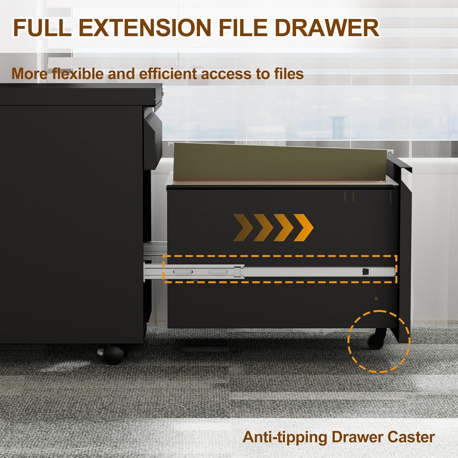 - [Easy to Assemble]:This LVSTEEL mobile filing cabinet is fully pre-assembled, except for the casters, which means you can use it almost immediately after receiving the product without having to go through a tedious assembly process.