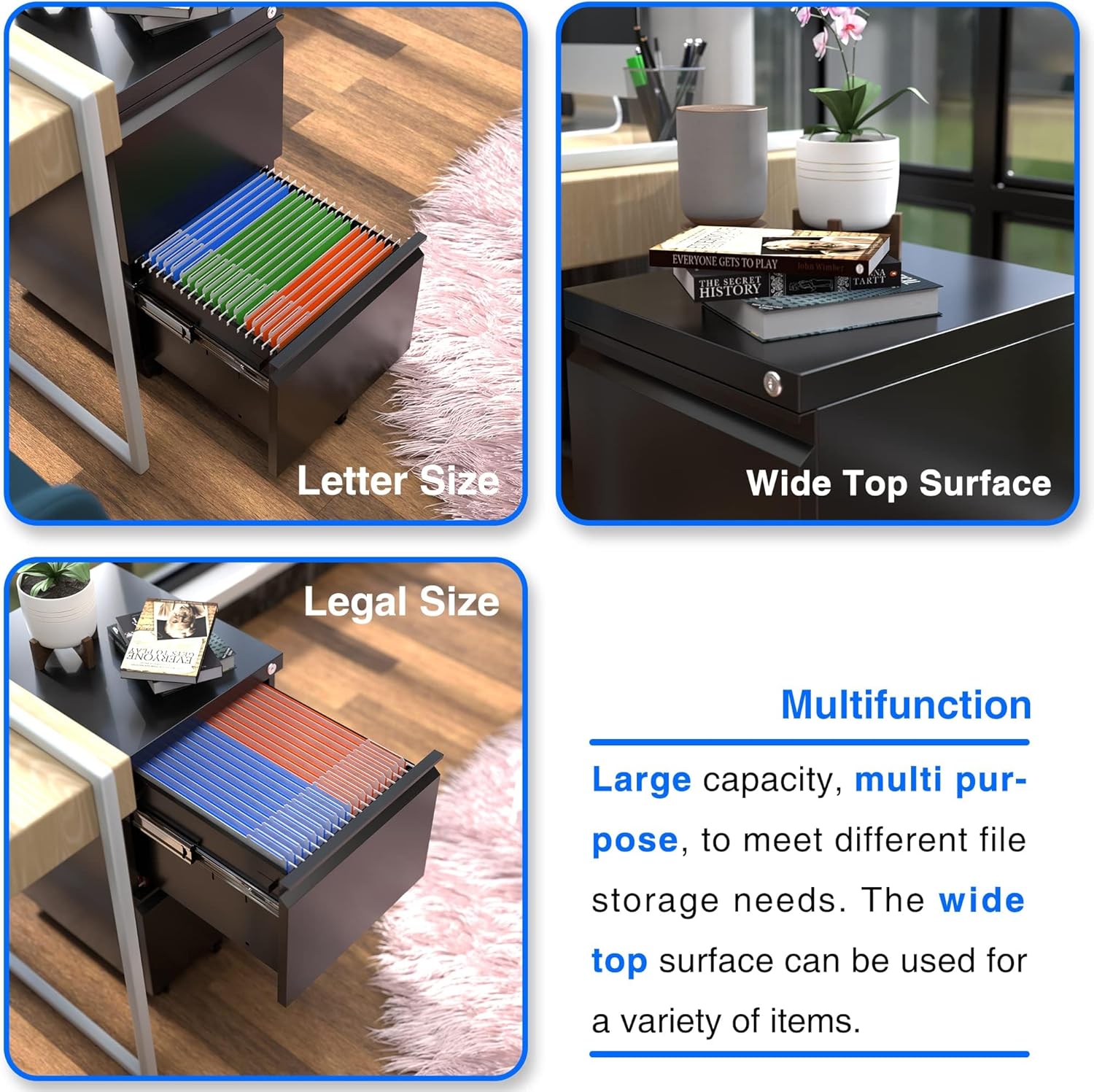 Aobabo 2 Drawer File Cabinet, Lockable Metal Filing Cabinet with Wheels for Home Office, Legal/Letter Size, Fully Assembled Except Wheels, Black