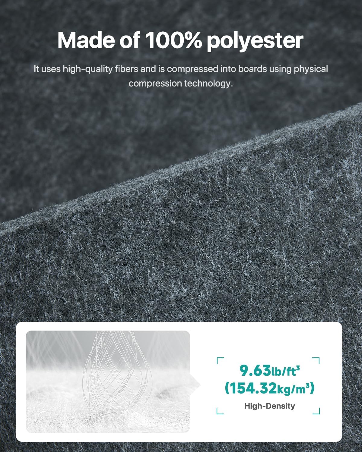 - High-Quality Material: Sound proof panels for walls made of 100% high-quality polyester fiber;soundproof foam panels are durable and wear-resistant