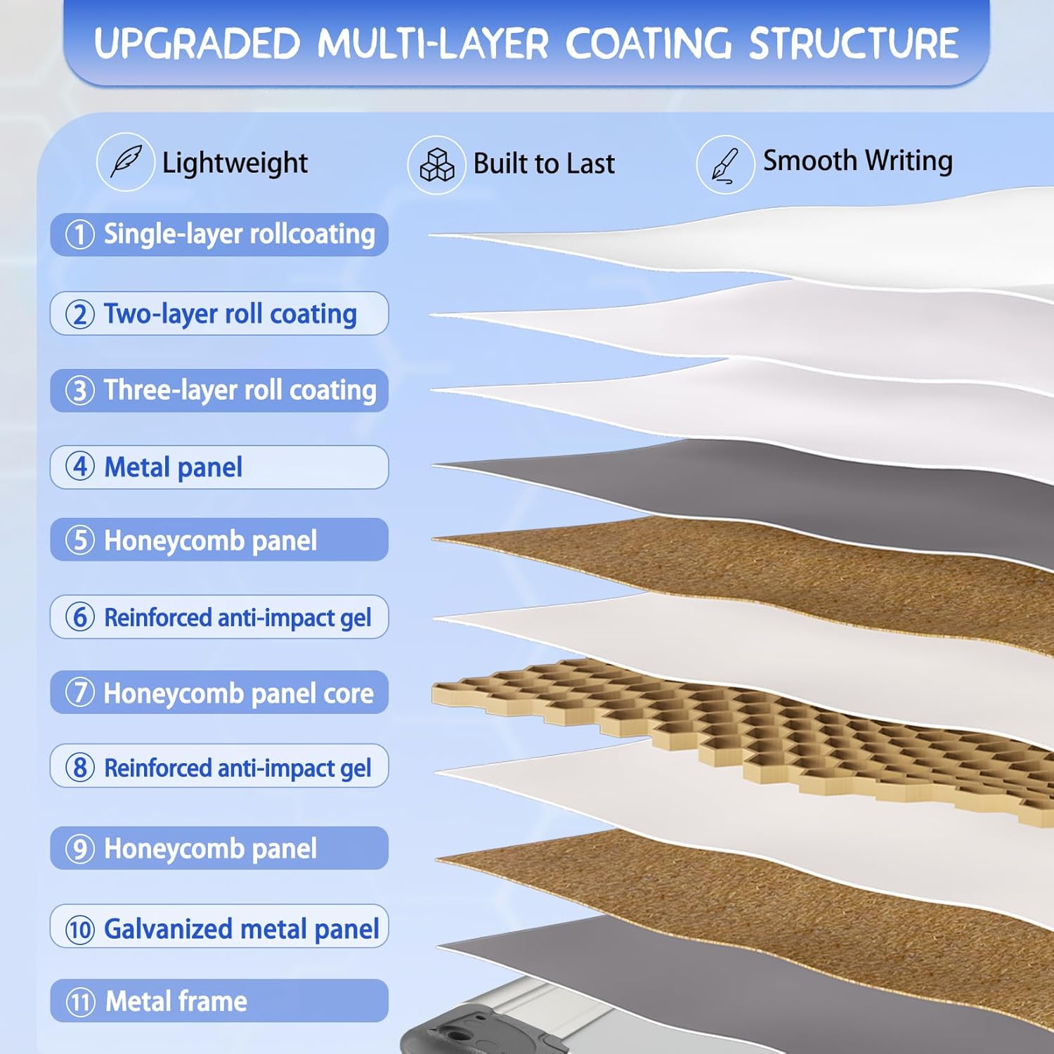 - 🧲Details Define Quality: This white boards dry erase adopts an upgraded multi-layer coating structure design. The board surface is triple-painted, and the internal structure is as high as eleven layers. At the same time, the frame is made of a high-grade solid aluminum frame and ABS plastic corners, which are durable and ensure long-term stable use
