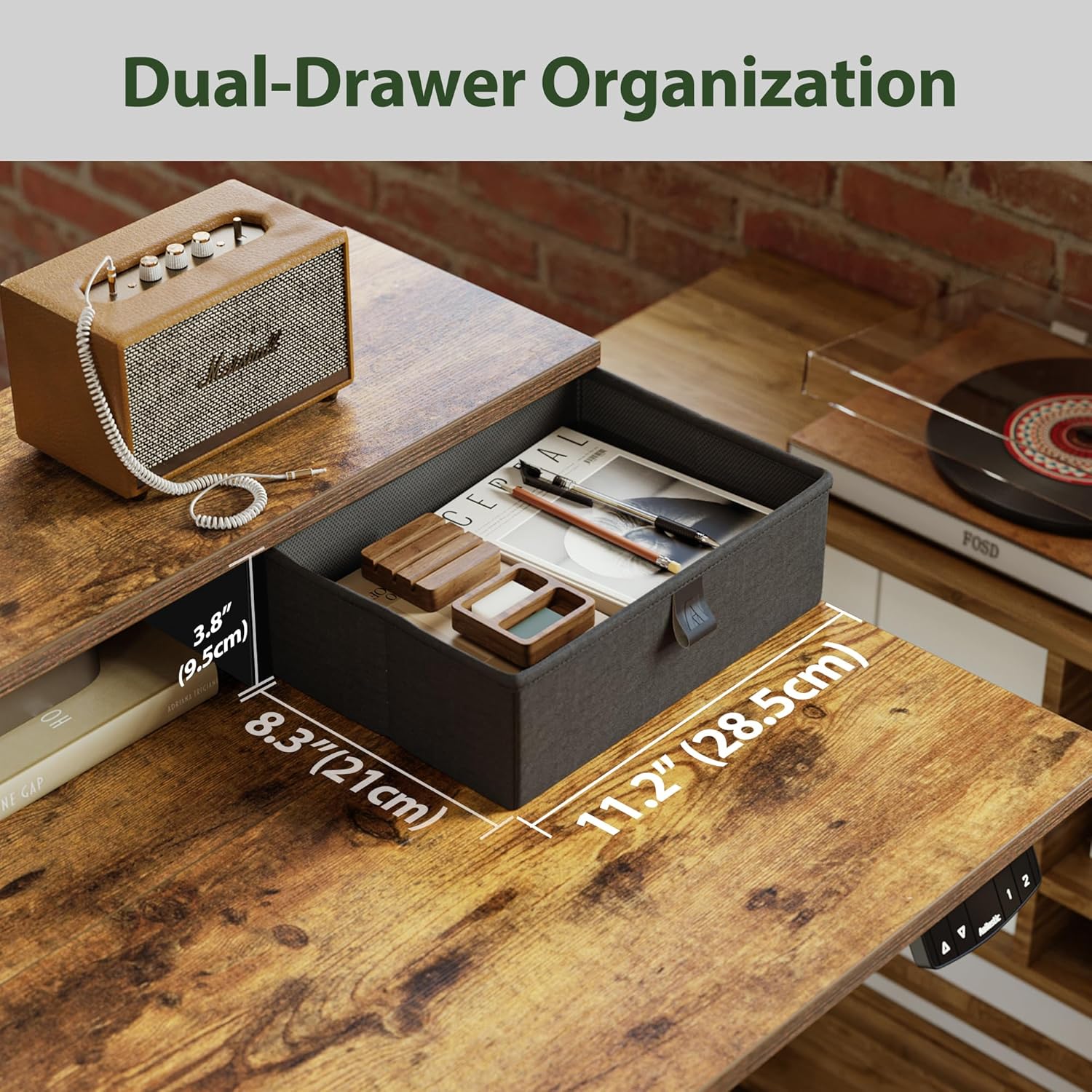 Agilestic 53 x 24 Inches Height Adjustable Electric Standing Desk with 2 Drawers, Stand Up Electric Desk Adjustable Height, Sit Stand Computer Gaming Table with Splice Board, Rustic Brown