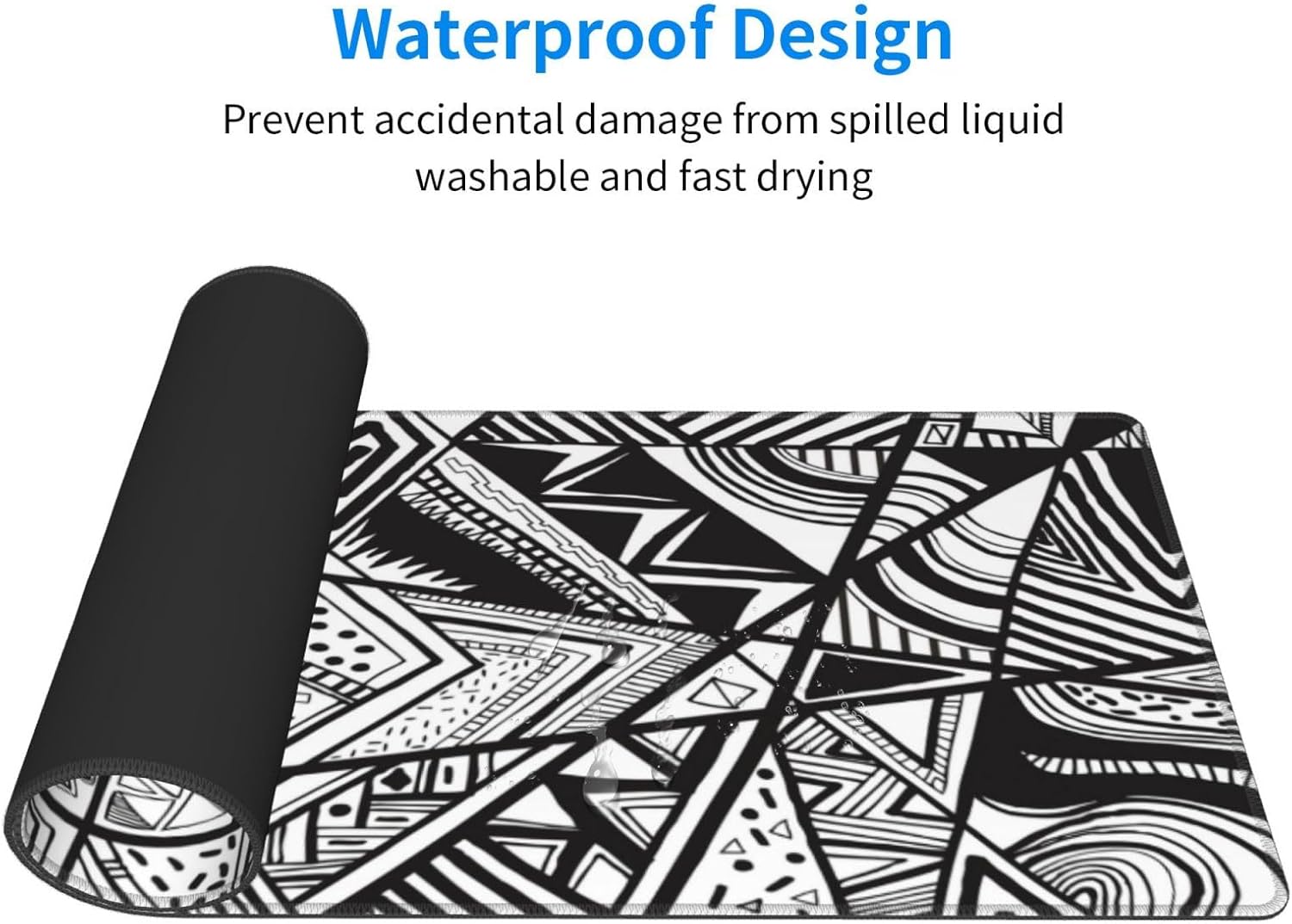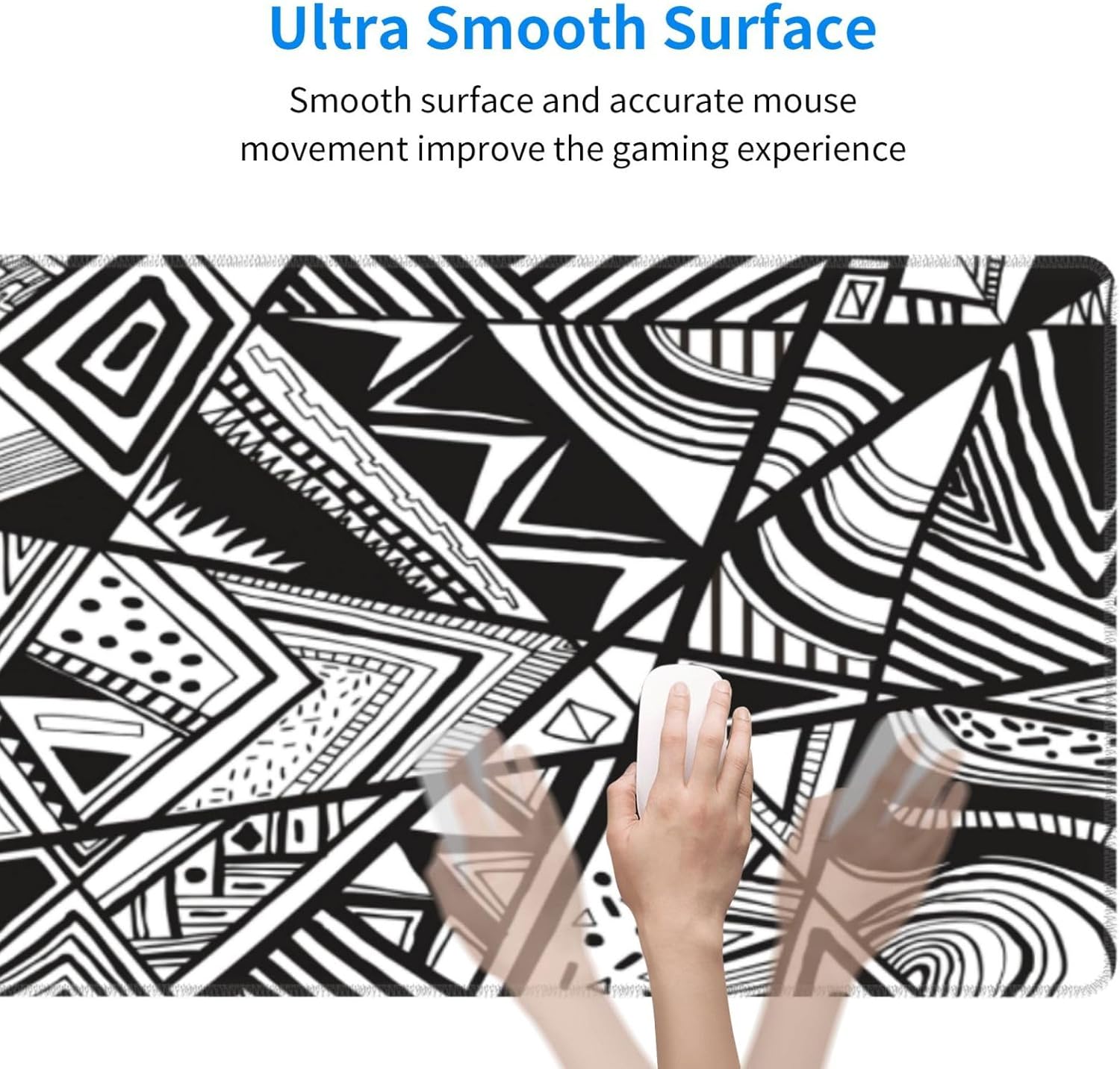 Gaming Mouse Pad, Large Non-Slip Rubber Base Mousepad, Keyboard Mouse Mat, Desk Pad with Stitched Edges, 31.5x11.8inch,Black Checkered Abstract Pattern