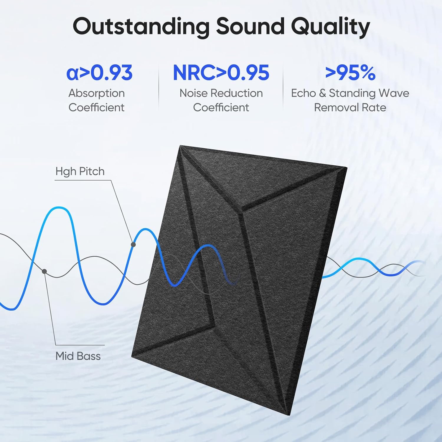 - Exceptional Sound Absorption -- Made with high-density polyester fiber (420 lb/m³), our panels achieve a sound absorption coefficient up to 0.95, effectively reducing echo and ambient noise.
