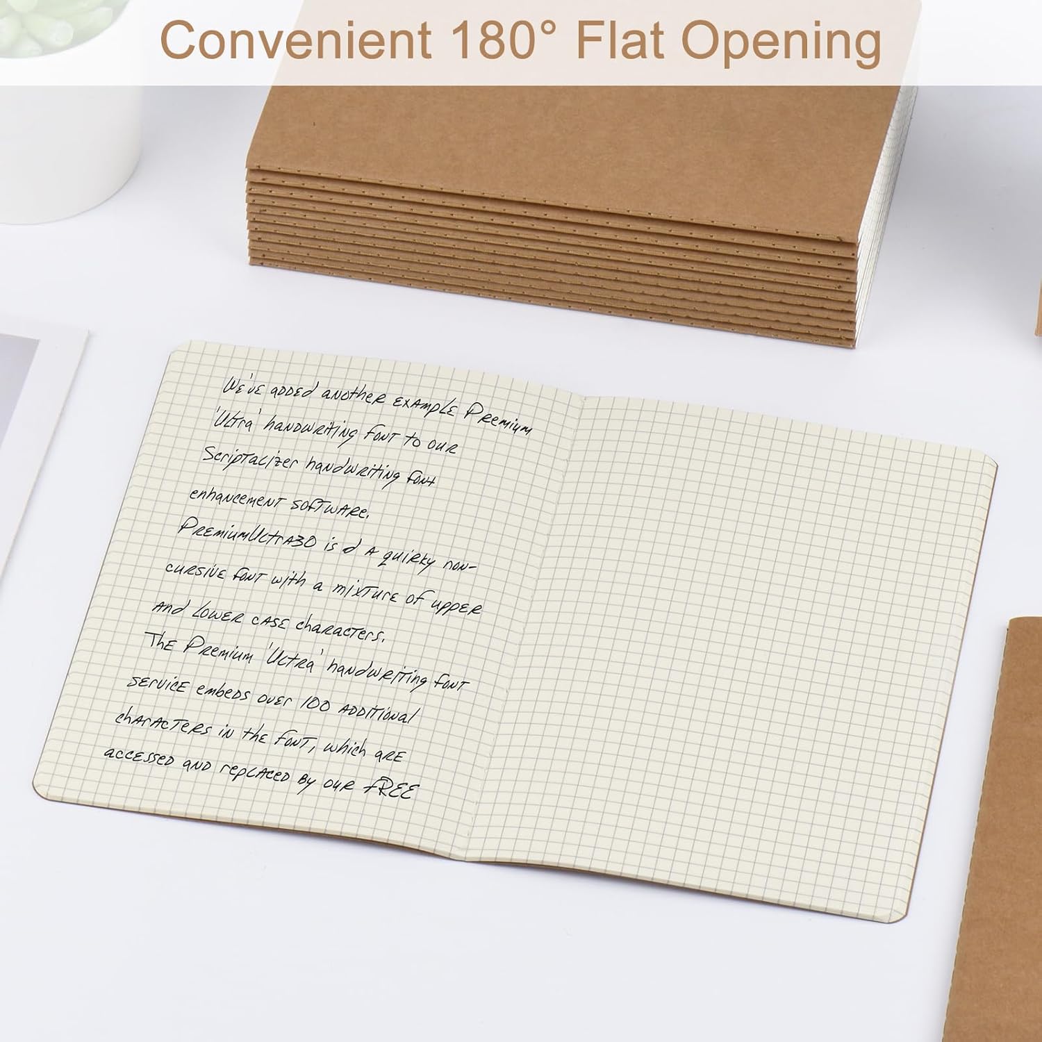 ZCZN 50 Pack A5 Kraft Notebooks Bulk, 8.15x5.5 Inches Graph Paper Journaling Notebooks, Notebooks for Work, Composition Notebooks for School, Journal Notebooks for Office, 60 Pages