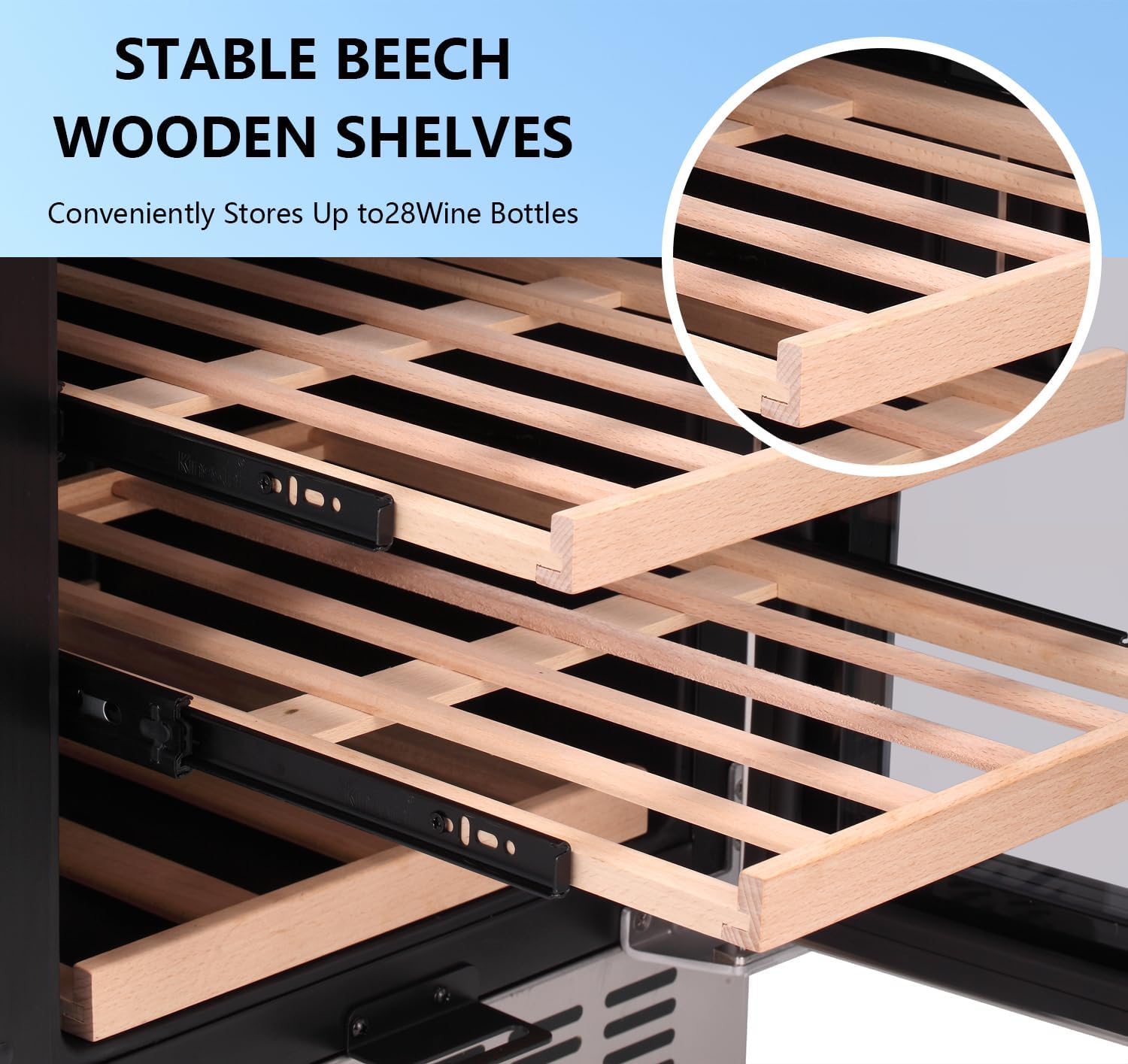 Antarctic Star Wine Fridge,15 Inch Wine Cooler Refrigerator Under Counter(41-68°F),28 Bottles Built-in Dual Zone &Freestanding Wine Refrigerator with Stainless Steel & Double-Layer Tempered Glass Door