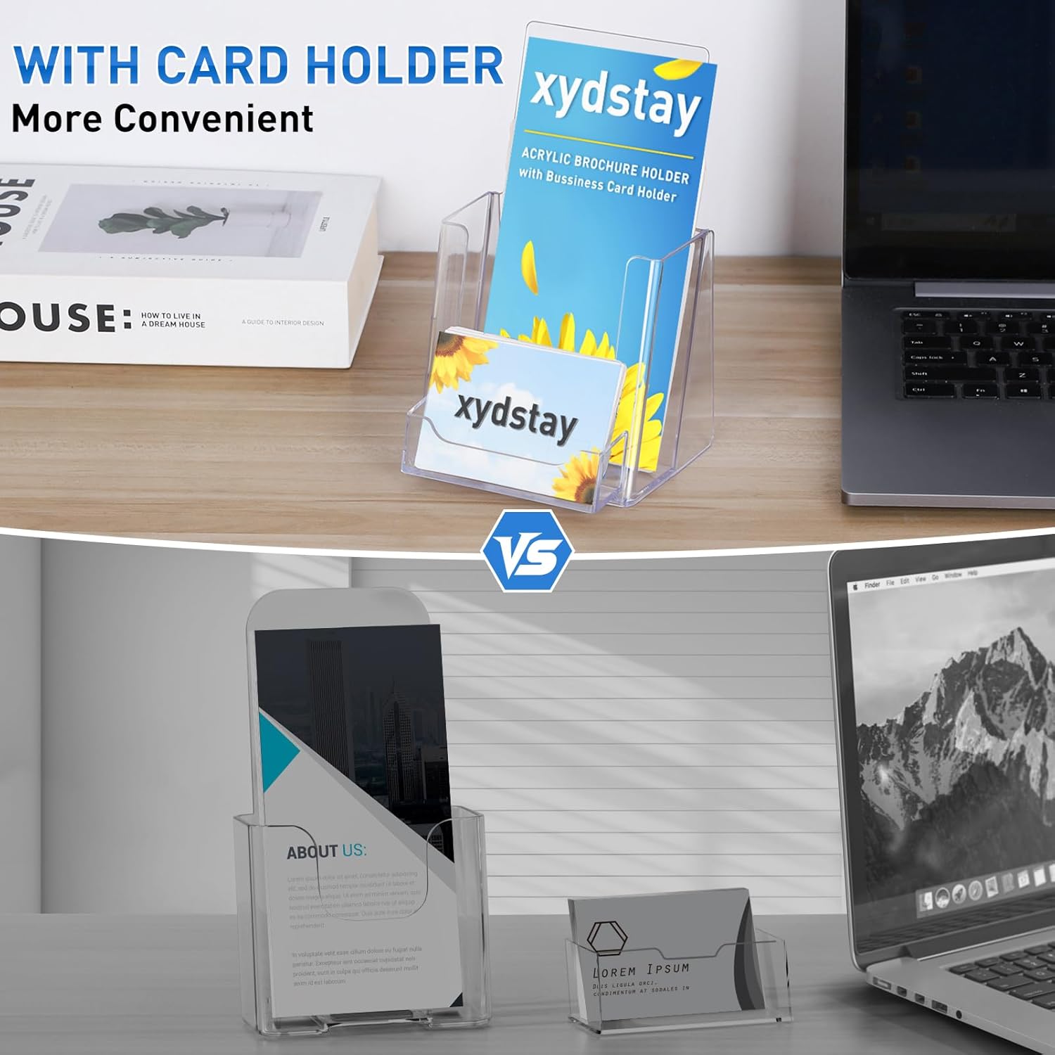 - 【Business Card & Brochure Holder】xydstay brochure holder stands out from the rest with its dedicated business card holder feature. Crafted from 2mm thick acrylic material, it offers exceptional durability, stylish aesthetics, and sturdiness. This design enables people to easily view brochures and business cards from a distance, enhancing visibility for promotional materials